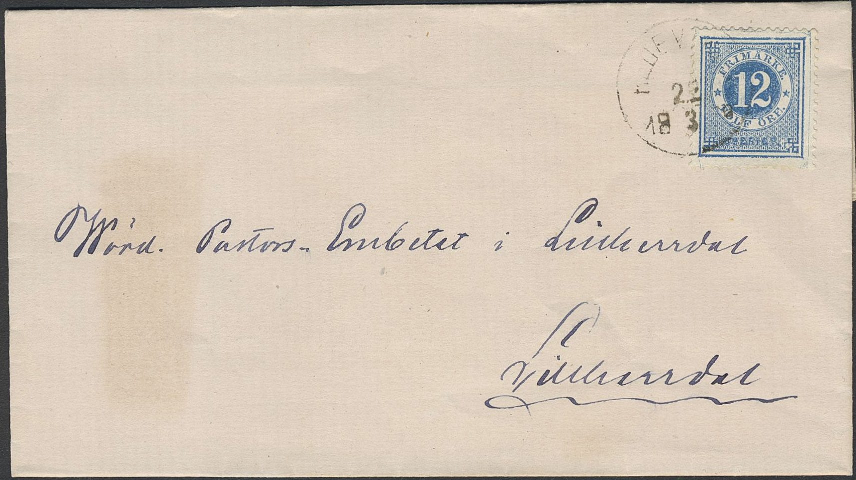 Sweden. Facit 21v8 on cover, 12 öre blue, coloured lines in TWO margins on cover ssent from HEDEVIKEN 22.3.187x to Lillerdal. Scarce.