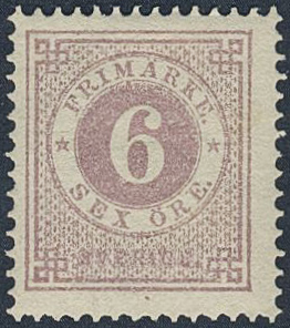 Sweden. Facit 31b ★, 6 öre reddish lilac. Very fine and fresh copy with opinion (shade) by O.P. SEK 2500