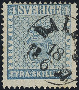 Sweden. Facit 2, B county. DALARÖ 18.6.1857, circle cancellation. Postal: 2500:-