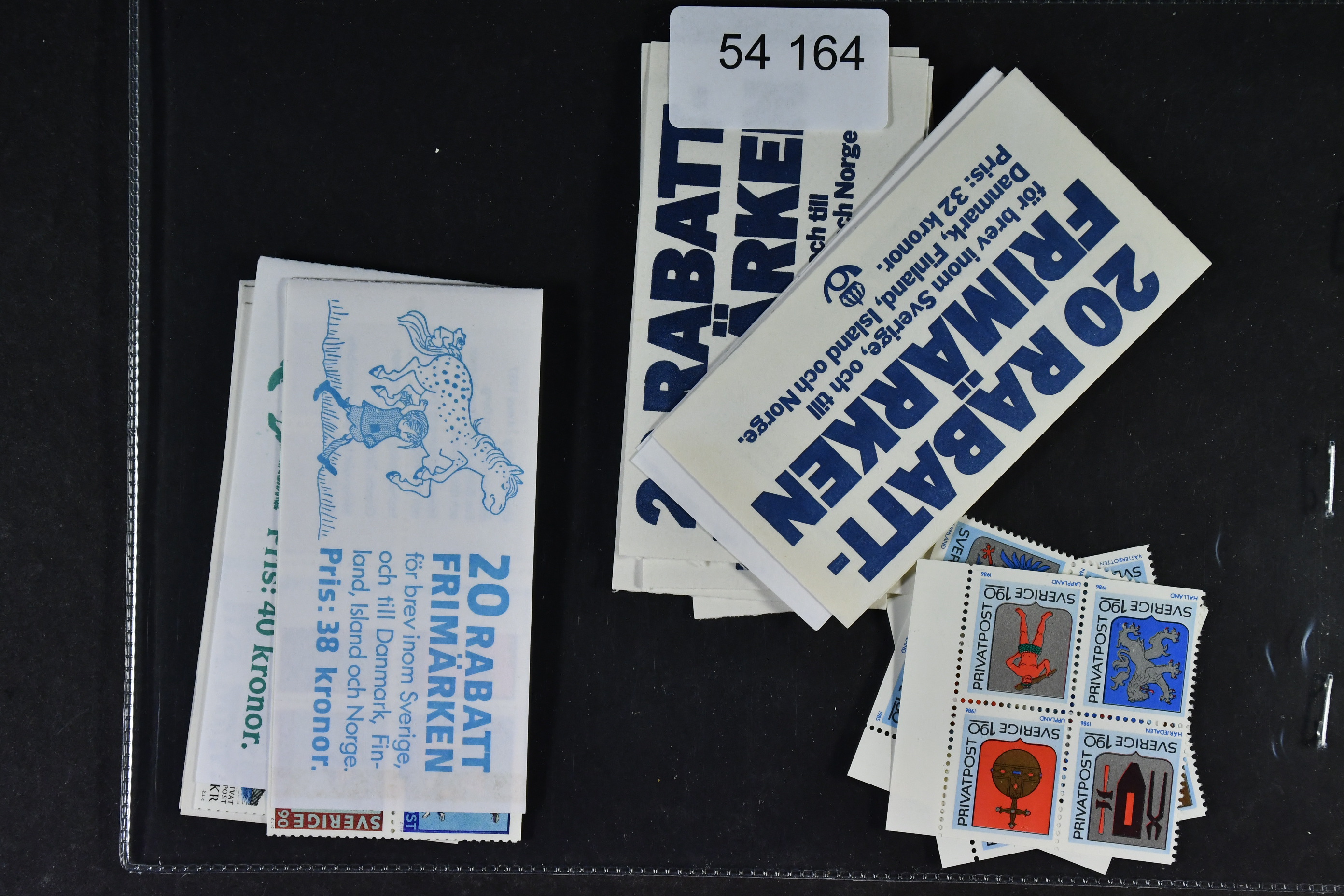 Sweden. Discount stamp booklets, lot. 13 booklets and 12 loose stamps, all for use in the Nordic countries.