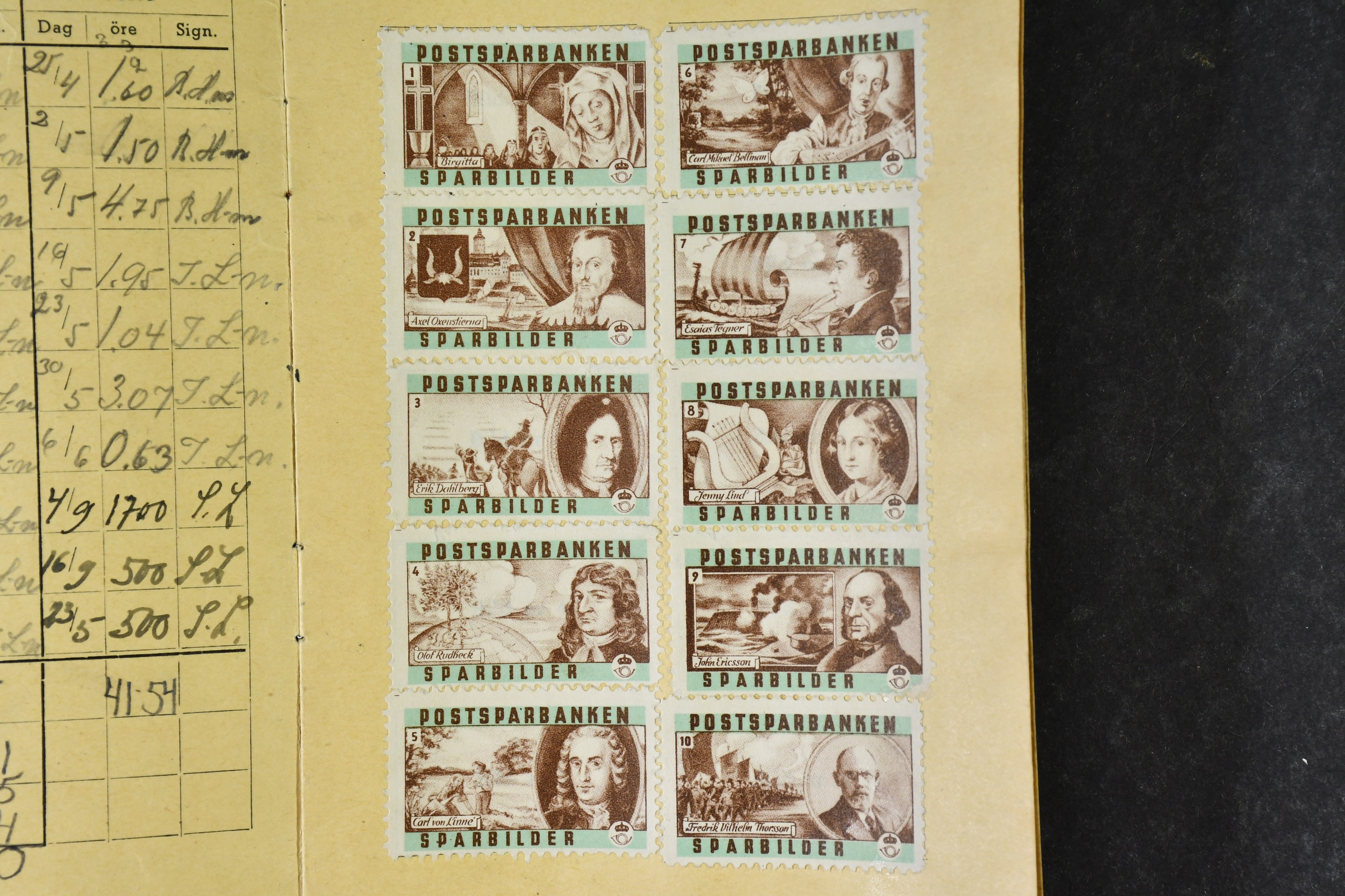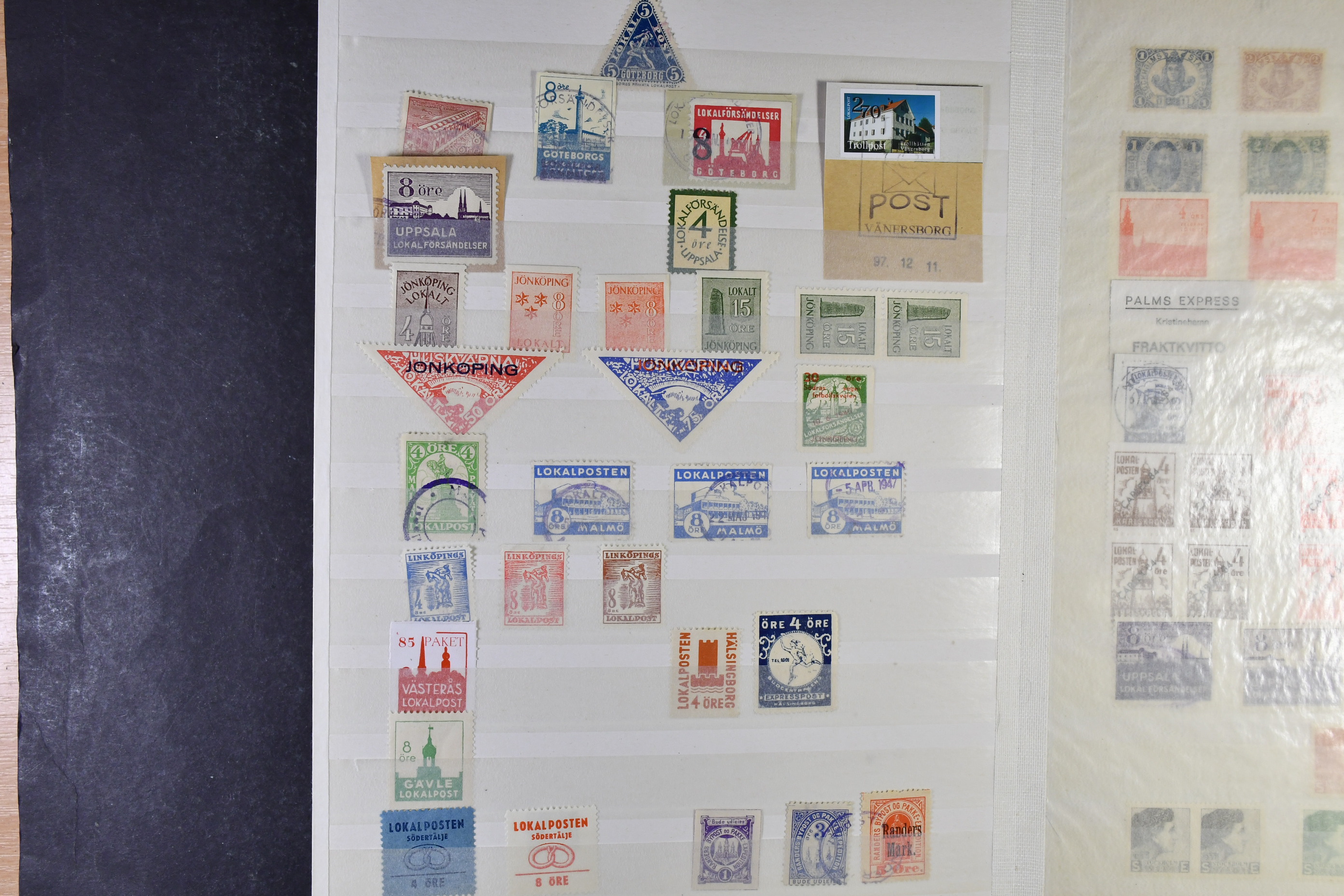 Sweden. Cinderella, accumulation 1910– in box. A number of albums and folders with cinderella (e.g. matchbox labels, poster stamps, seasons greetings poster stamps, charity poster stamps, postal savings bank revenues, local mail stamps etc). Complete sheets, sections of sheets, single stamps. Very disorganized. A lot to explore! Somewhat mixed quality. Approx. 12 kg.