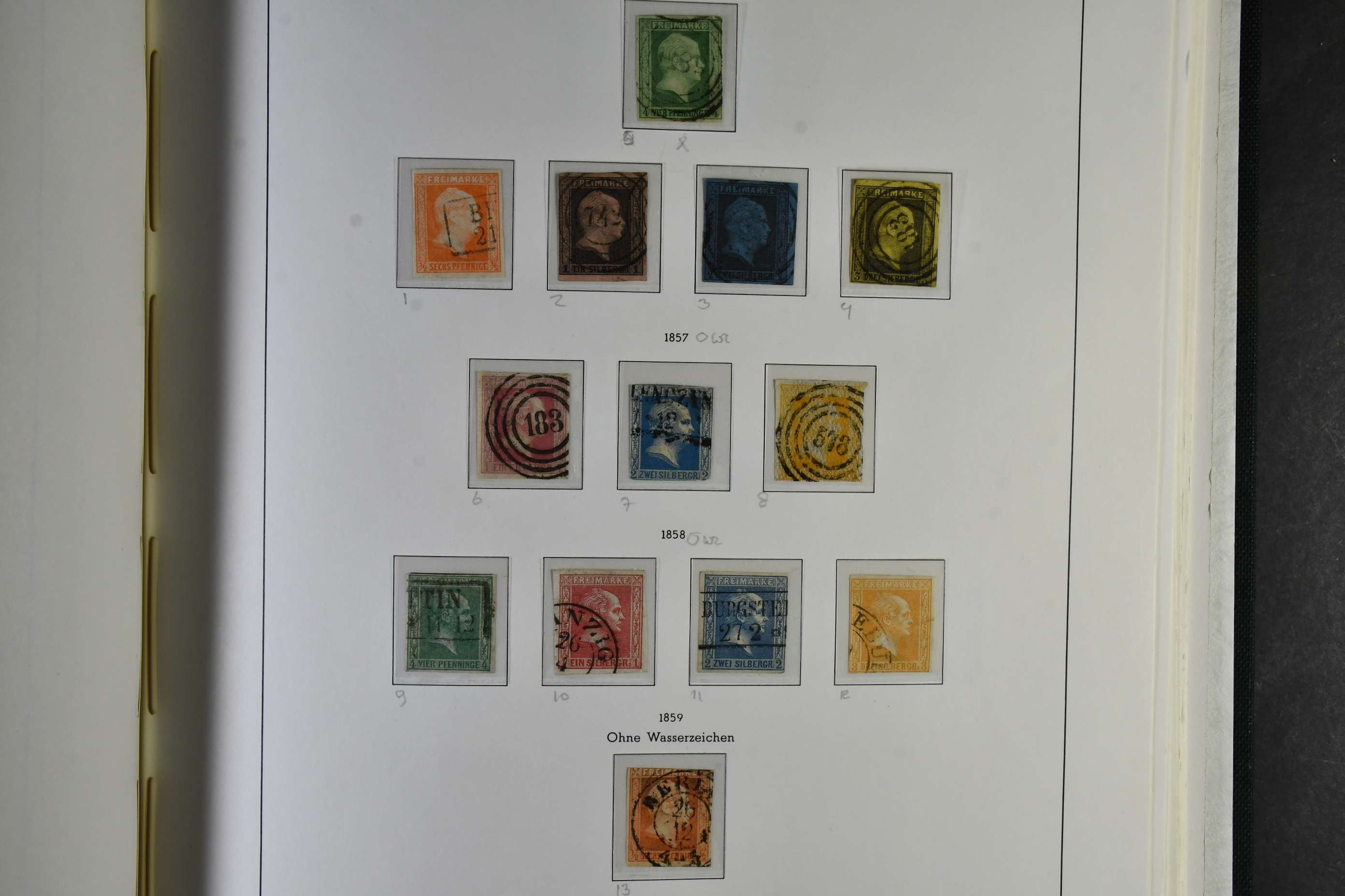 Germany, states. Collection mostly used in Leuchtturm album with stamp mounts. A very good coll. with many better stamps from most if not all states, as usual in mixed condition but very high cat.value. Important pages are all on the website. Mixed quality.