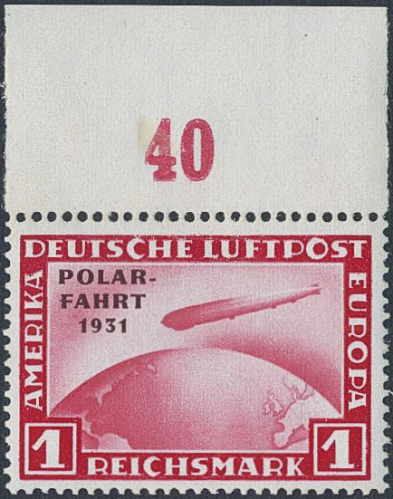 Germany, Reich. Michel 456 ★★, 1931 Polarfahrt 1 RM lilac-red. With numbered sheet margin at top. EUR 700