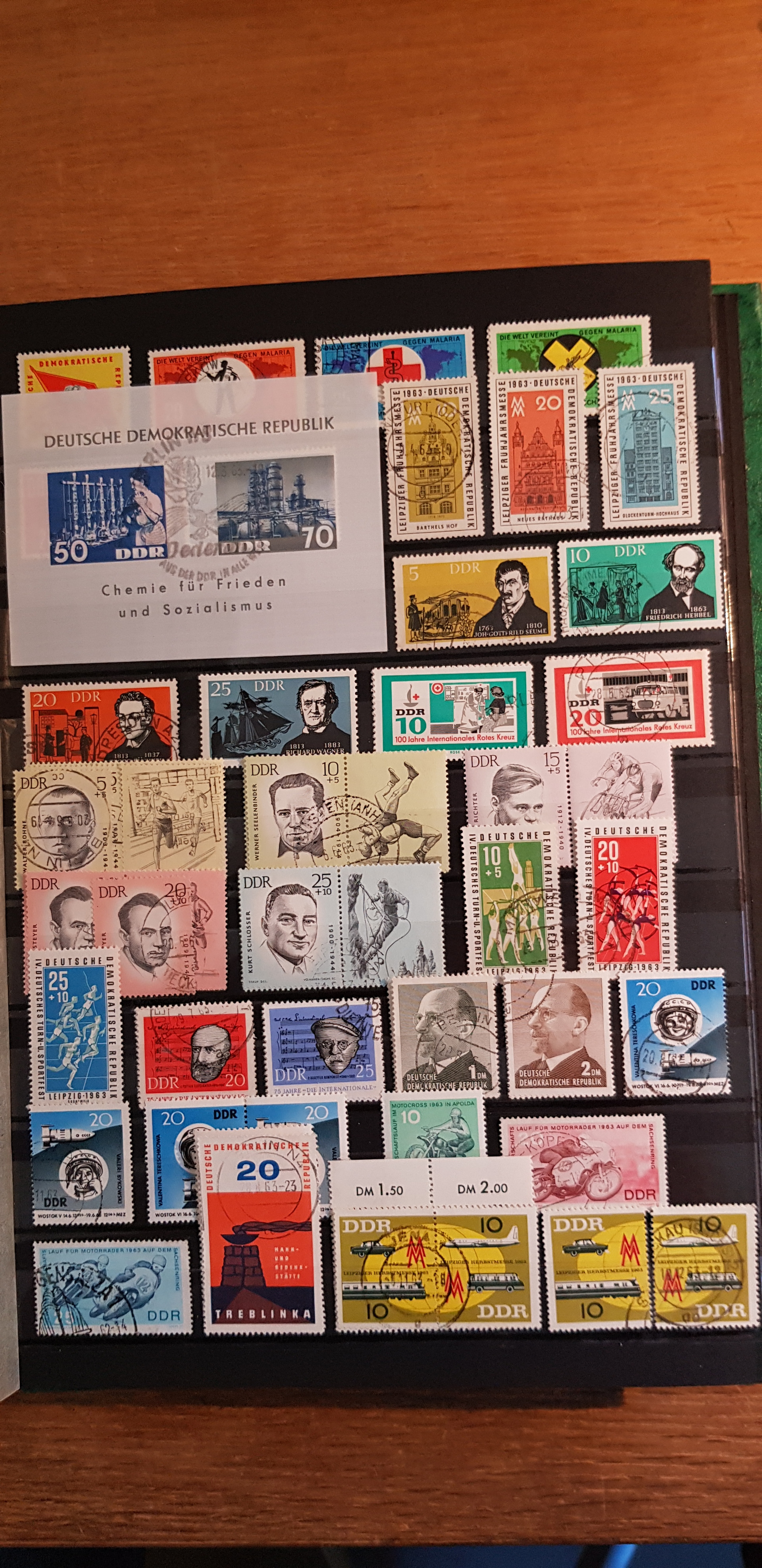 Germany, GDR (DDR). Collection/accumulation ★★/★/⊙ 1900–2000 in three albums in box. Good and nice accumulation also incl. the ones that are diffcult to find in regular accumulations. One album with only souvenir sheets. Please see a selection of scans at www.philea.se. Mostly fine quality. Approx. 6 kg. (>4000)