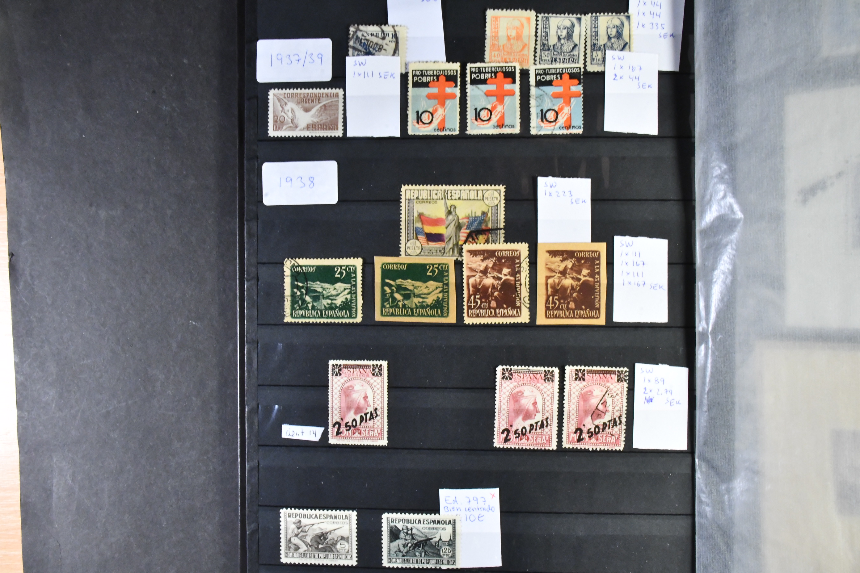 Spain. Collection/accumulation ★/⊙ 1850–1952 in stockbook. Most of the material 1850–1935. Organized chronologically. Plenty of stamps with catalogue value 100 € and higher. Also a few mini sheets included. Please see a selection of scans at www.philea.se. Mostly good quality. (>250)