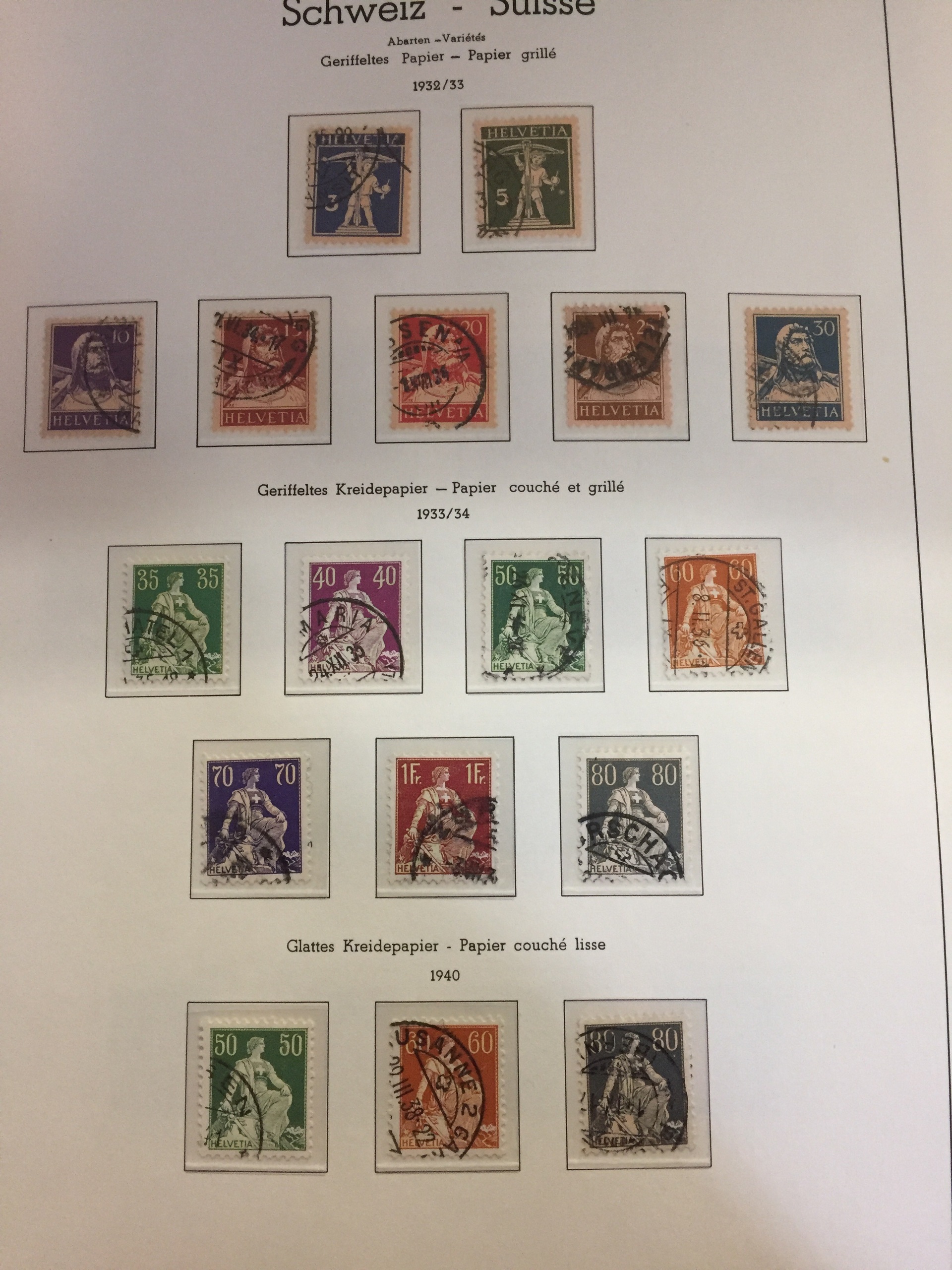 Switzerland. Collection used 1850–1992 in Leuchtturm album with stamp mounts. Almost comlplete in main numbers after 1880, only the most expensive stamps and s/s missing. Several better as a complete set PAX 1945. In the beginning mixed quality, later fine.