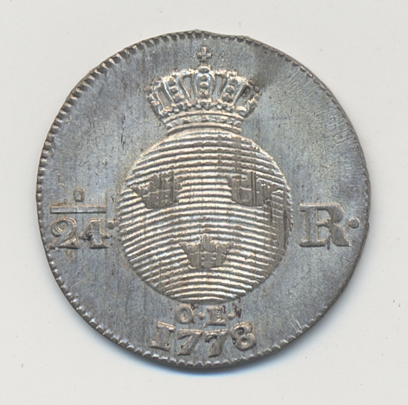 Coins, Sweden. Gustav III, SM 93, 1/24 riksdaler 1778. 2.67 g, SMB 89. 01/0.