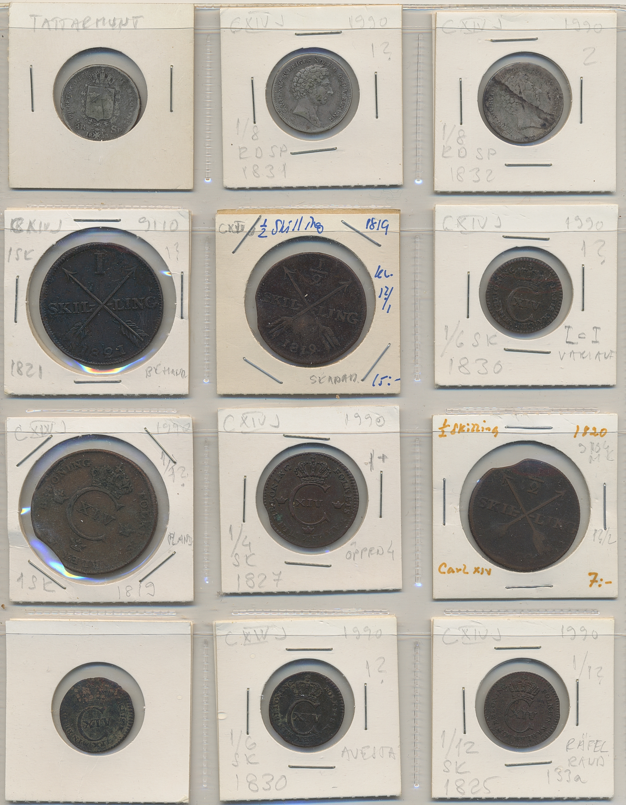 Coins, Sweden. One album with 103 coins in silver and bronze 1819–1873, mixed quality. .