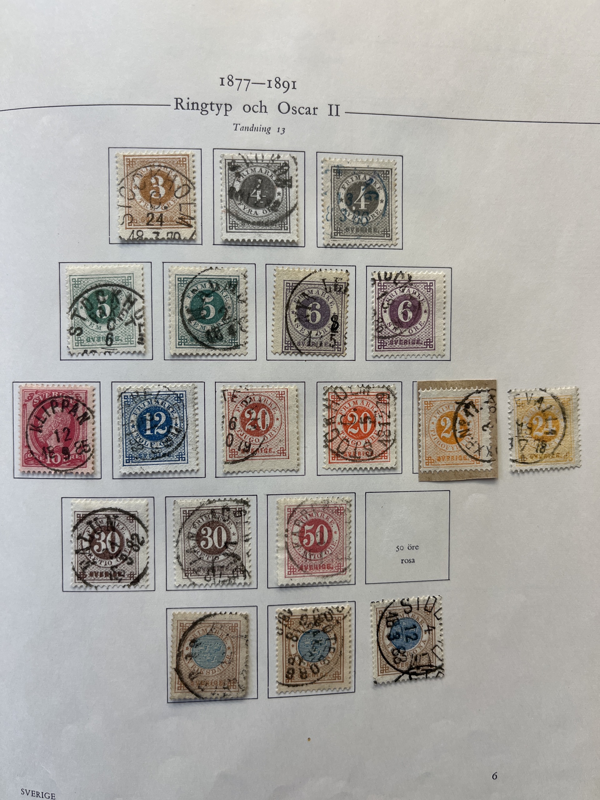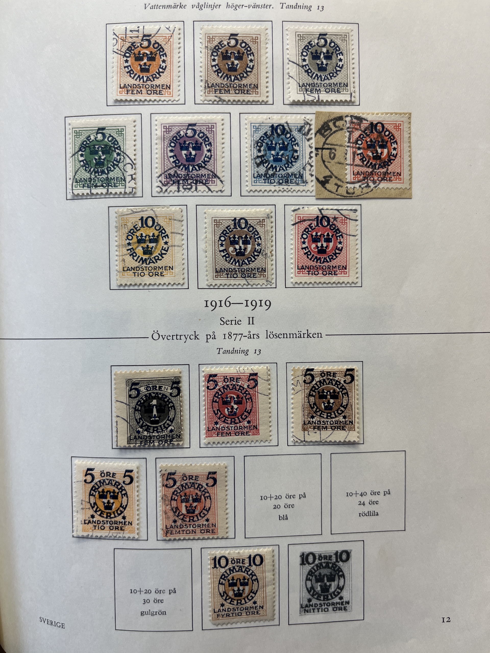 Sweden. Collection used 1855–1955 in album with 1924 UPU complete. No pairs. Please see a selection of scans at www.philea.se. Mostly good quality.