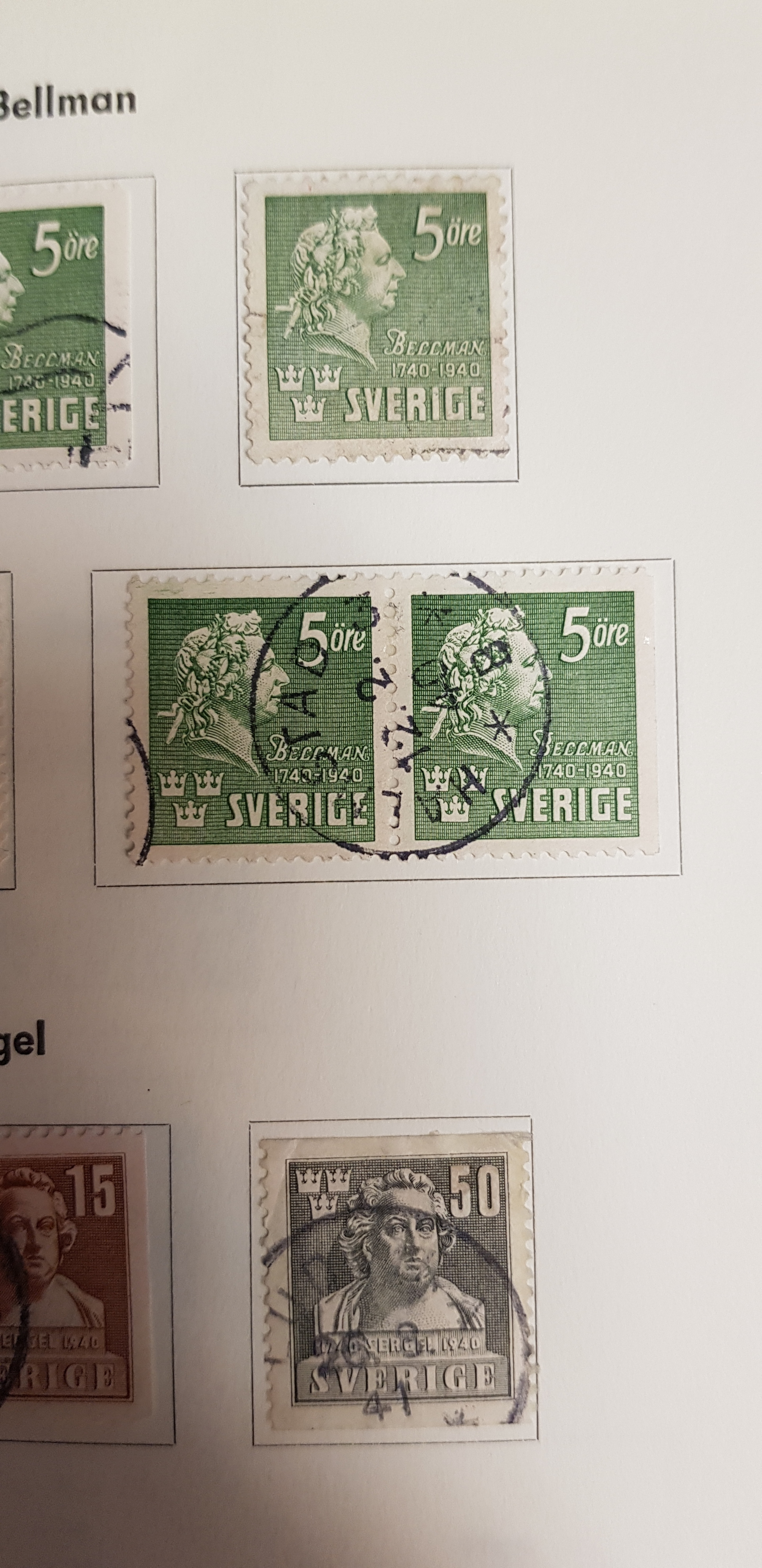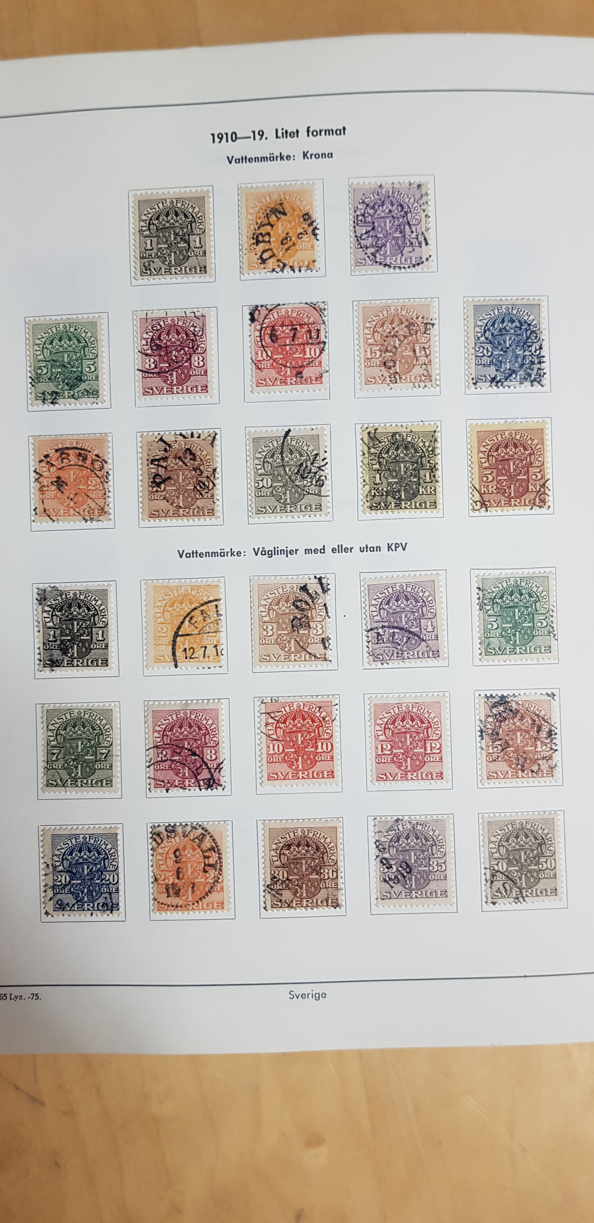 Sweden. Collection/accumulation mostly used 1855–2015 in box. Two Facit albums with used stamps incl. some BC/CB pairs and some of the 1924 World Post Congress, plus three albums with duplicates and also foreign stamps. Please see a selection of scans at www.philea.se. Mostly fine quality. Approx. 10 kg.
