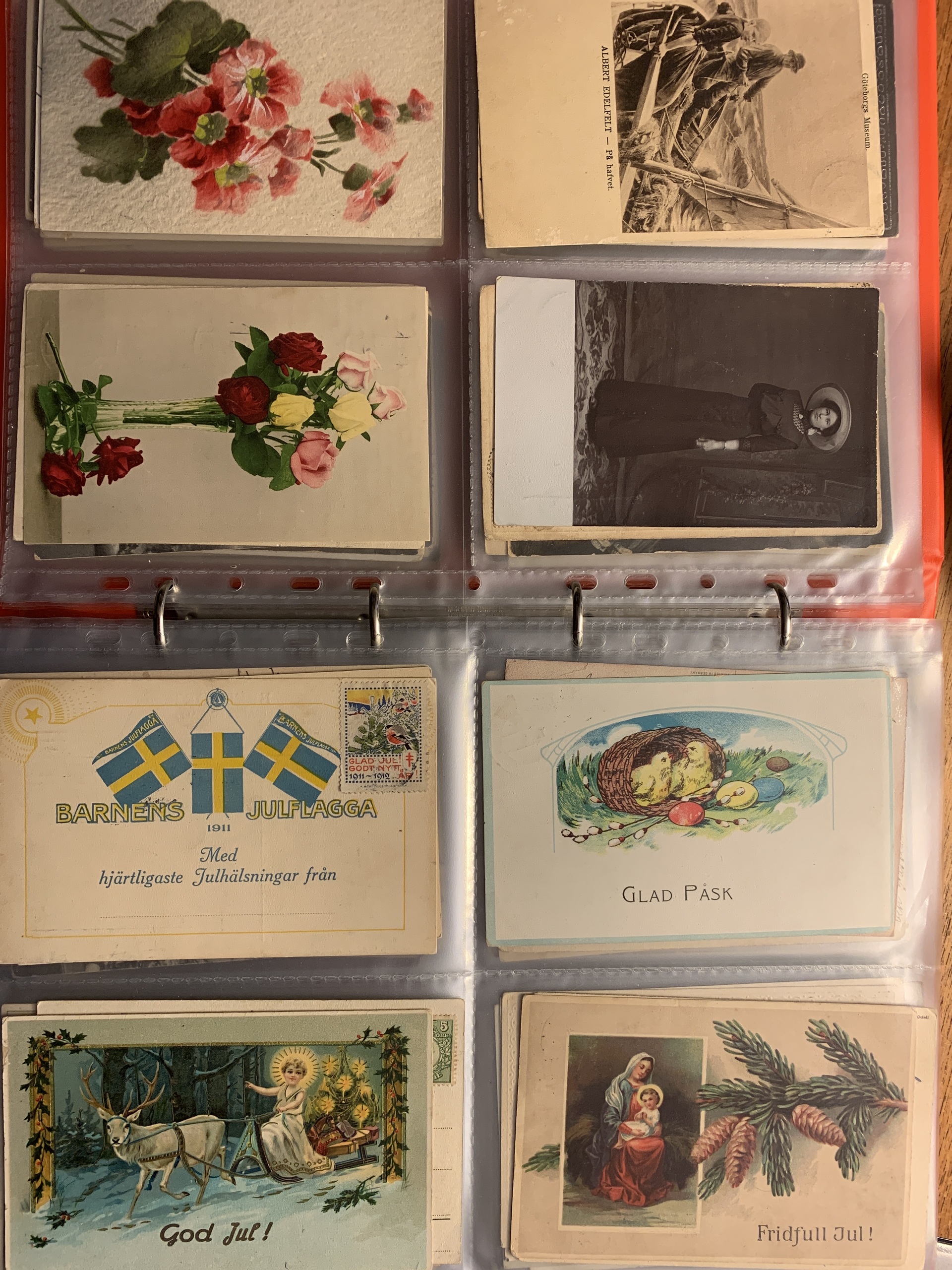 Sweden. Picture postcards. Different motifs, small size, all franked with GV medallion, 5 or 10 öre, more than 300 different in a binder with plastic pockets.