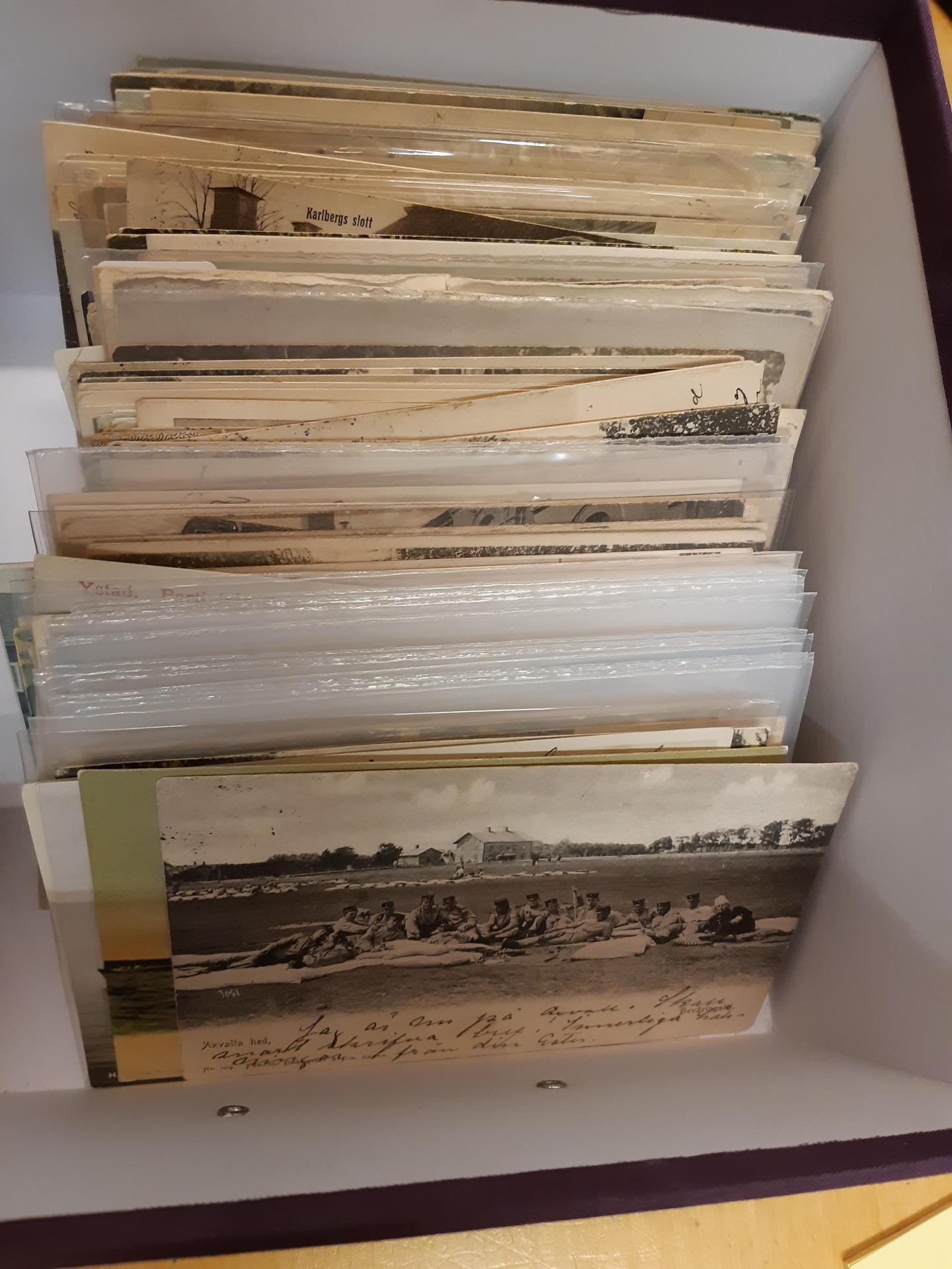 Sweden. Picture postcards, collection MILITARY–related in small box. 1900–1950, all in the old size. Almost all used. (>230)