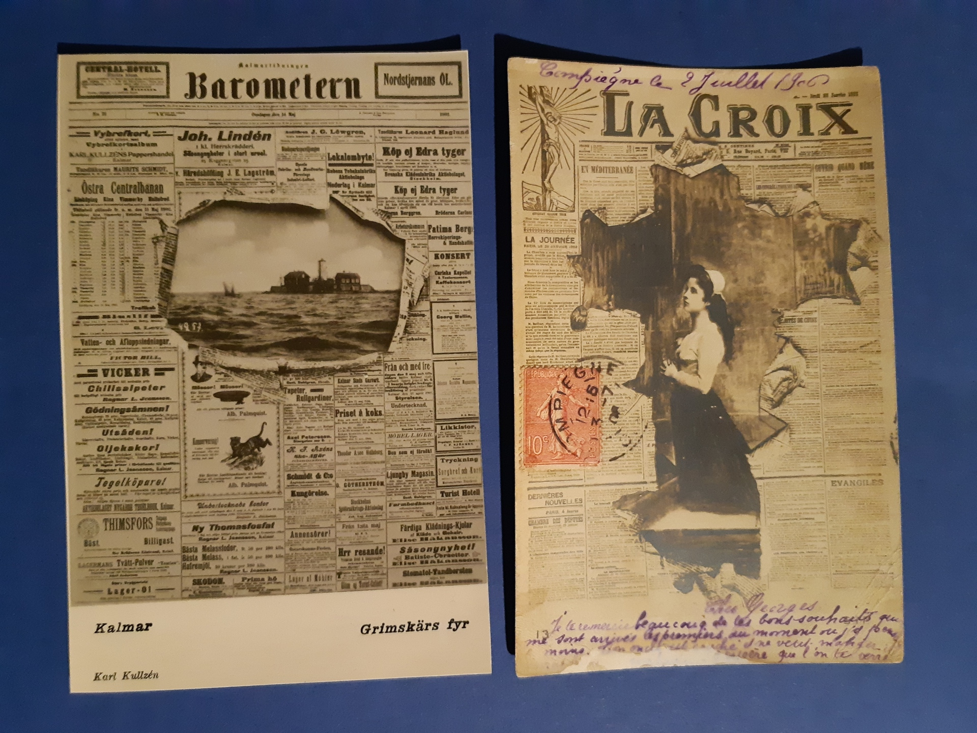 Sweden. Picture postcards, lot NEWSPAPER CARDS. Twelve different cards of which eight are franked with Oscar II and one card is plundered. Also one reprint and one French card. (14)