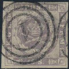 Denmark. Facit 6 used, 1857 Skilling 16S. grey-violet. SEK 1800