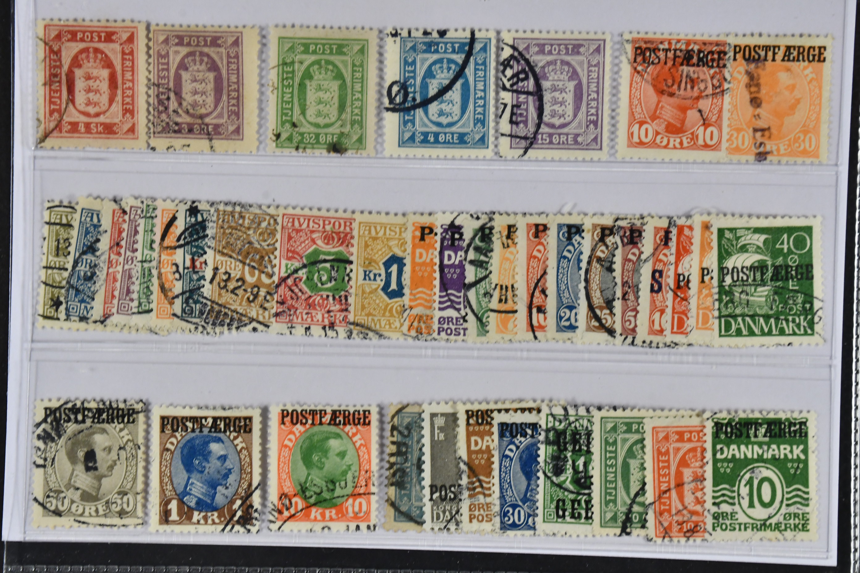 Denmark. Used 1871–1955. Back-of-the-book, all different, e.g. Tj2, TJ6, Tj9, Tj18, Tj23, TI 1-10, L 1-9, PF1, PF3, PF6b, PF7, PF9, PF23-25. Mostly good quality. F SEK 7760 (40)