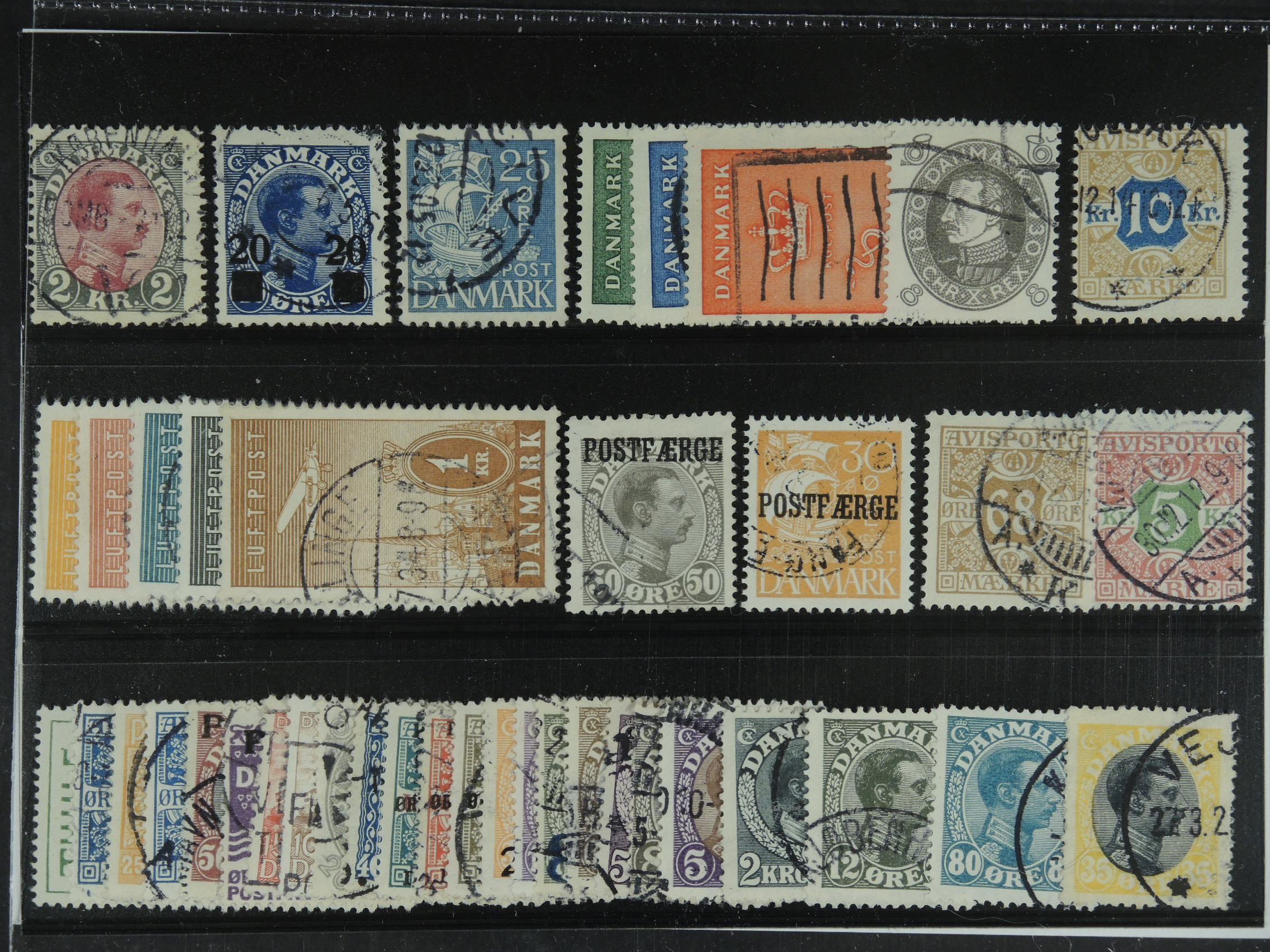 Denmark. Used 1913–37. All different, e.g. F 162, 176, 231, 243-45, 248, 262-66, PF 6, 24, TI 7, 9-10. Mostly good quality. F SEK 5.050 (40)