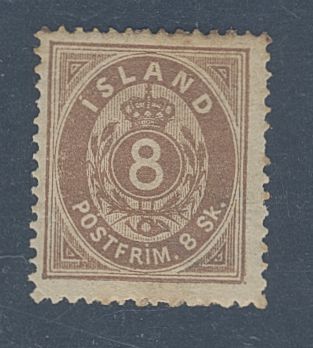Iceland. Facit 3 ★, 1873 Skilding values 8 sk brown, perf 14 × 13½. SEK 3000