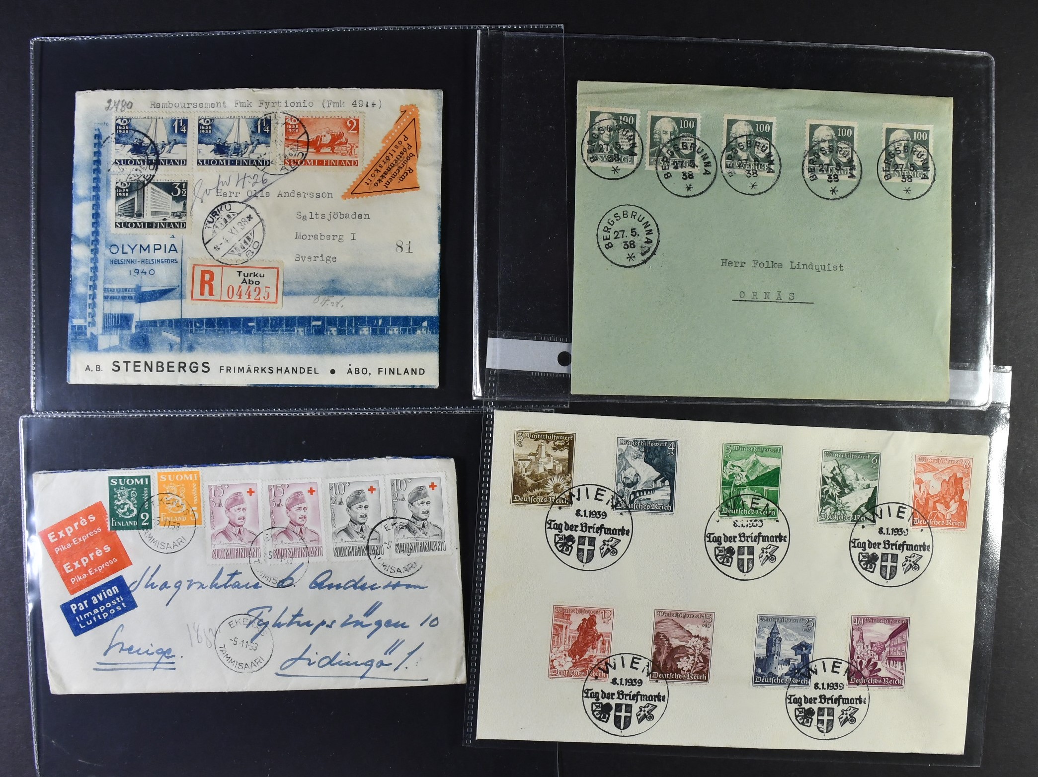 ALL WORLD. Accumulation covers. Housed in three binders and shoeboxes. 1920s-1950s in vast majority. A selection of scans are presented at www.philea.se. Approx. 7 kg. (approx. 700)