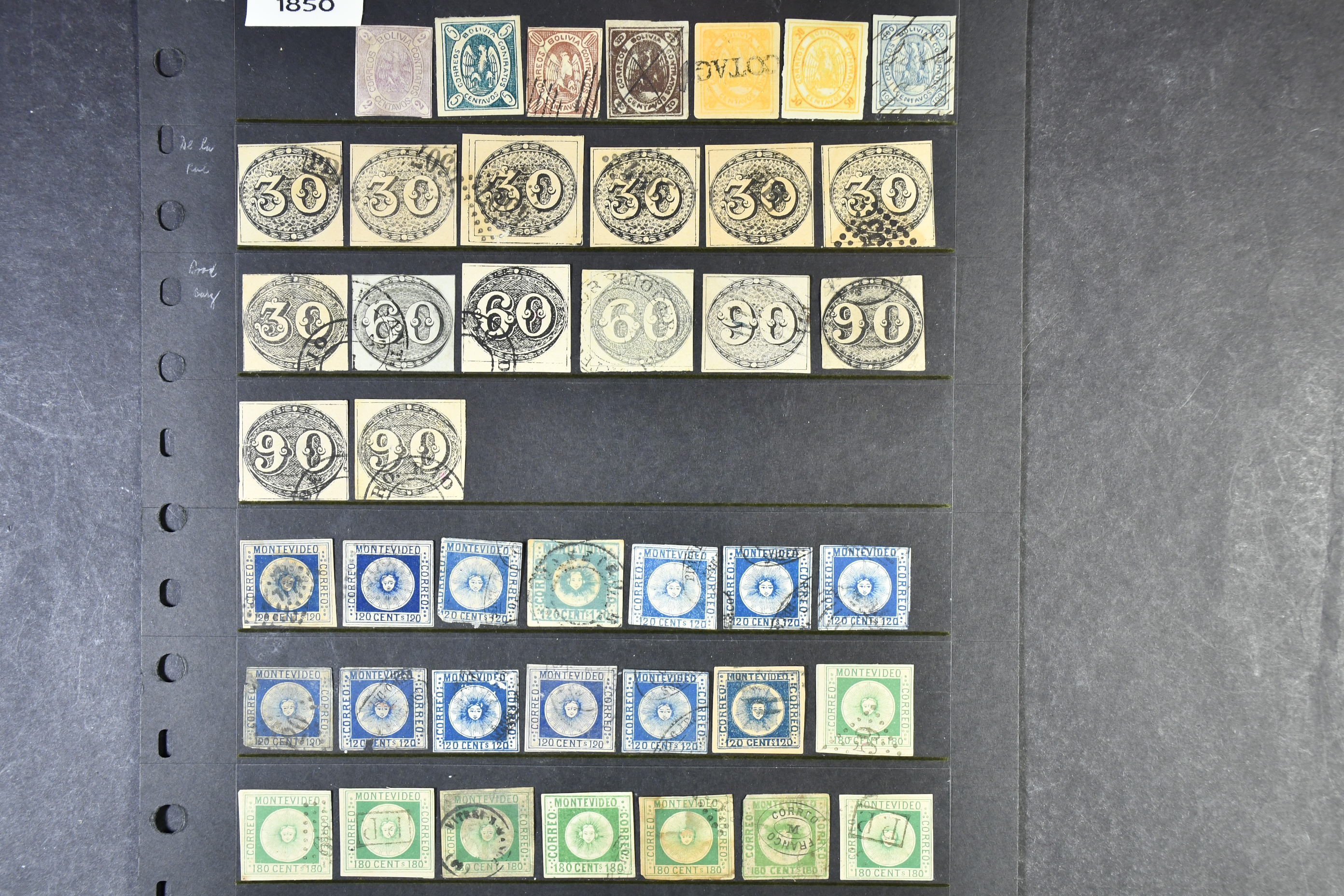 ALL WORLD, SOUTH AMERICA. Used Classics. Probably false stamps: Bolivia 7. Brazil 14. Montevideo 45. Peru 54. Mostly good quality.