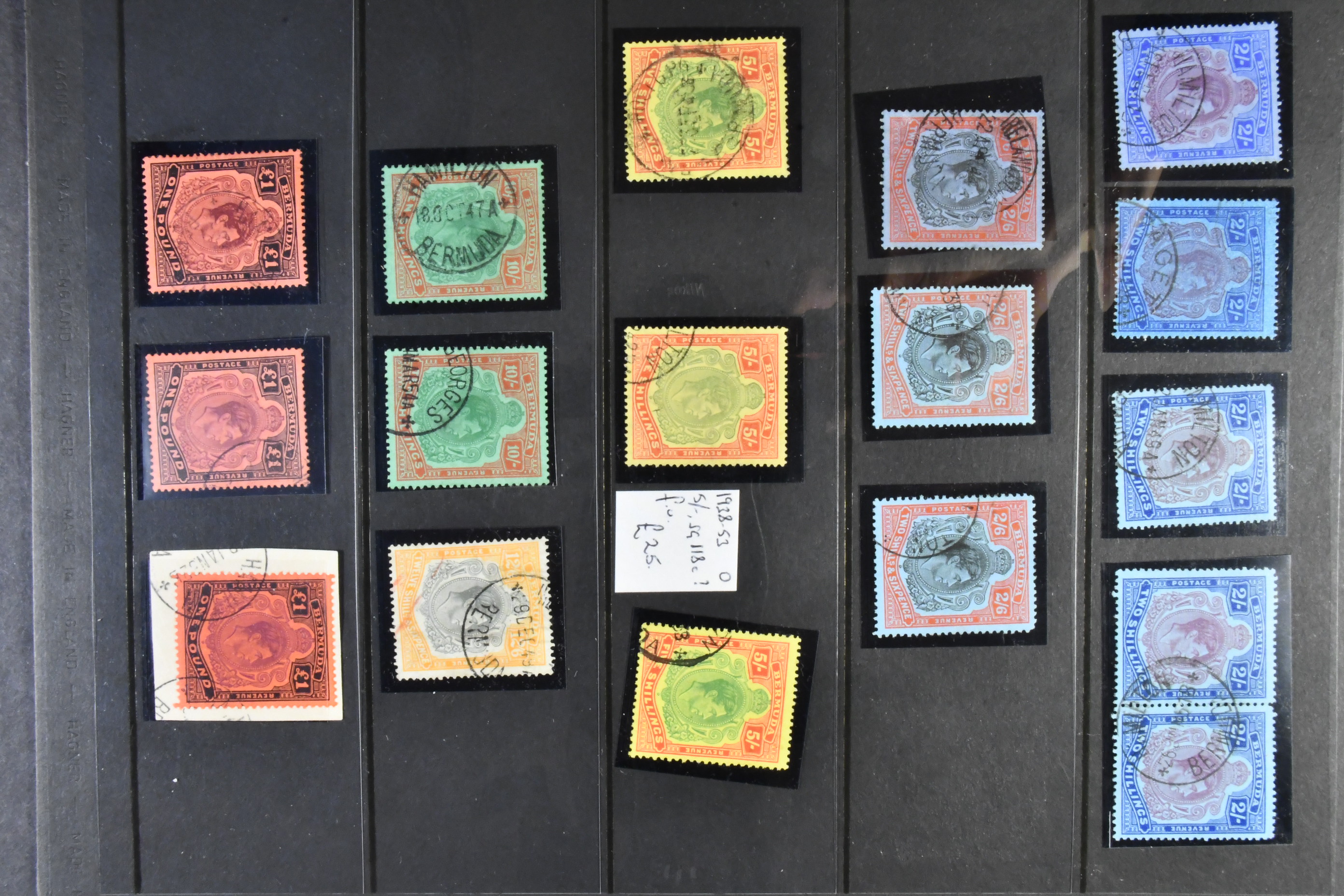 Bermuda. Lot ★★/★/⊙. A charming and most attractive collection, mint and used specifically for King George VI definitives in uniformly good condition throughout. Please note that the toning on the 12/6 key plate is completely normal for the first issue of the George VI definitive. There is much MNH throughout and when used, it is overwhelmingly circular date stamps. There at least 2/–×24, 2/6×12, 5/-×15, 10/–×4, 12/6×5 and £1×5, as well as a few covers. There are many permutations and types here, especially in the written up perf studies, as well as the more obvious shades, notwithstanding the high likelihood of varieties to discover as well. For the dealer or collector specialist of this area, a most enjoyable viewing awaits, for the most part uncatalogued. Please allow sufficient time for study. The entire lot is presented at www.philea.se.