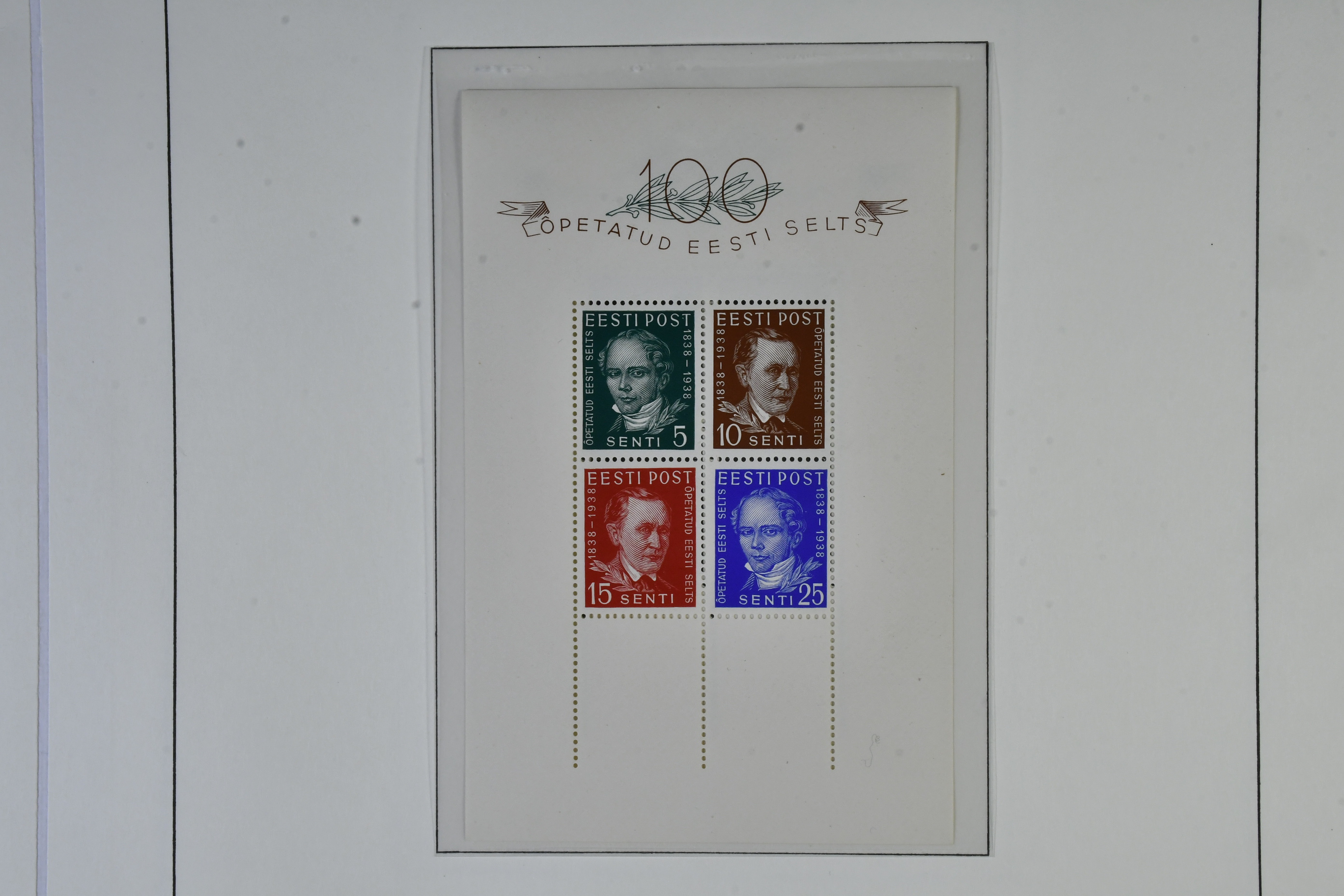 Estonia. Collection ★/⊙ 1918–40 on leaves. Several better stamps and a few covers and s/s. The entire lot is presented at www.philea.se. Mostly fine quality.