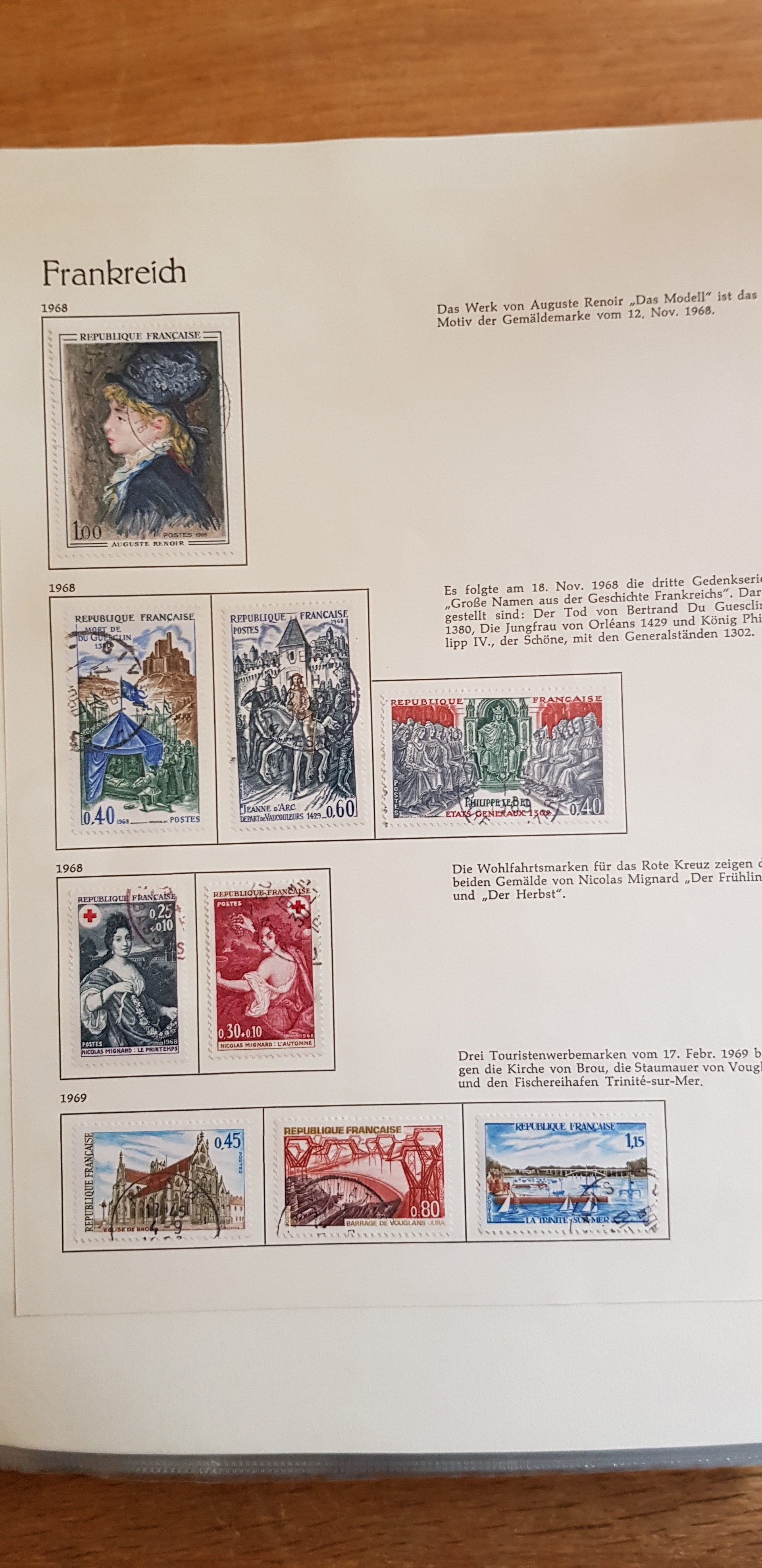 France. Collection/accumulation mostly used 1945–1979 in two albums. Nice collection including souvenier sheets and special leaves with envelopes. Please see a selection of scans at www.philea.se. Mostly fine quality. (>2000)
