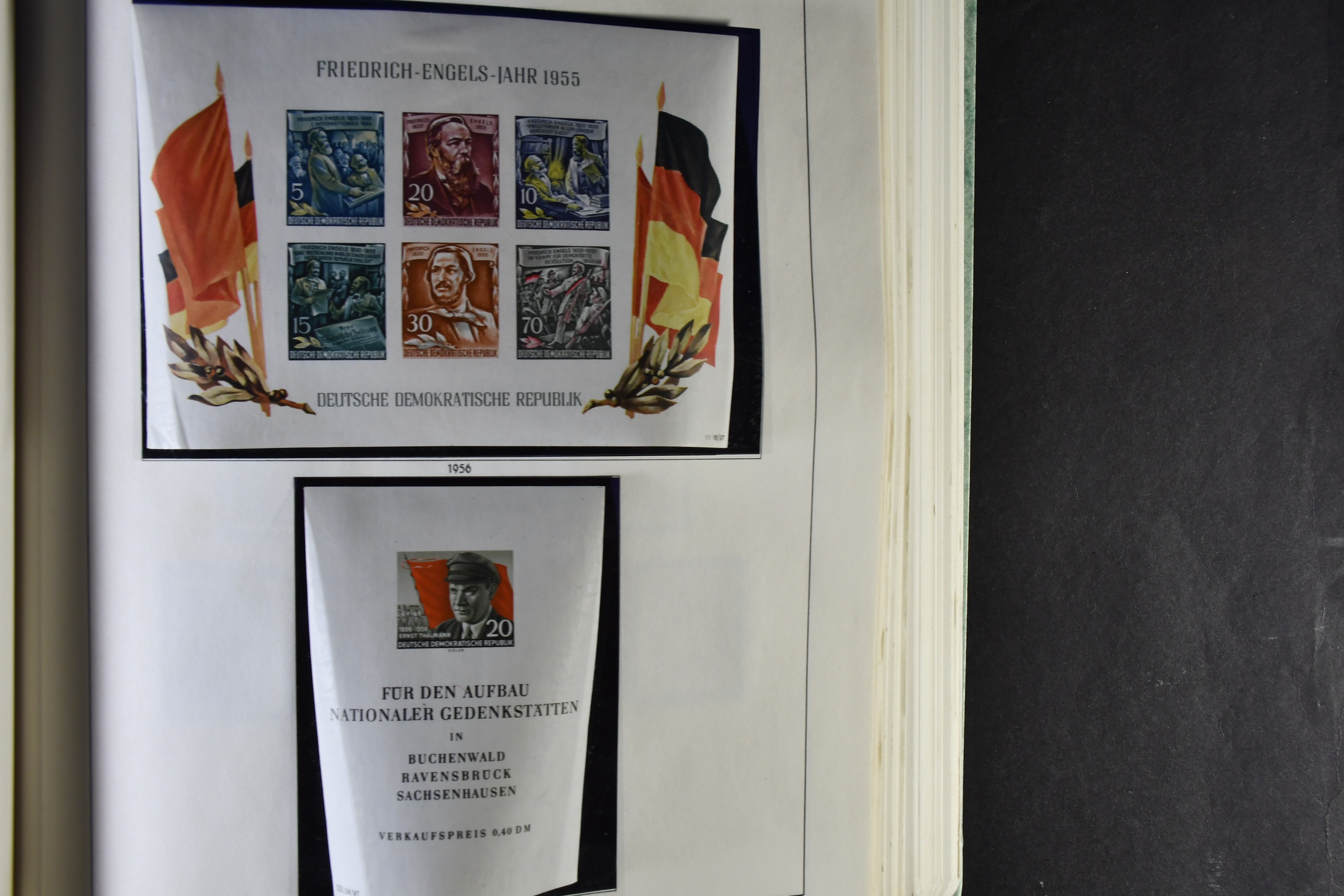 Germany, GDR (DDR). Collection ★★ 1945–1969 in old Leuchtturm album with stamp mounts. Starting with some Soviet Zone with some useful material, DDR apparently cpl from 1955 and well-filled before with all better issues except Peronalitiis 1950 and Chinese Friendship set (represented with water damage)- Also six used s/s incl e.g. Engels. Fine quality.