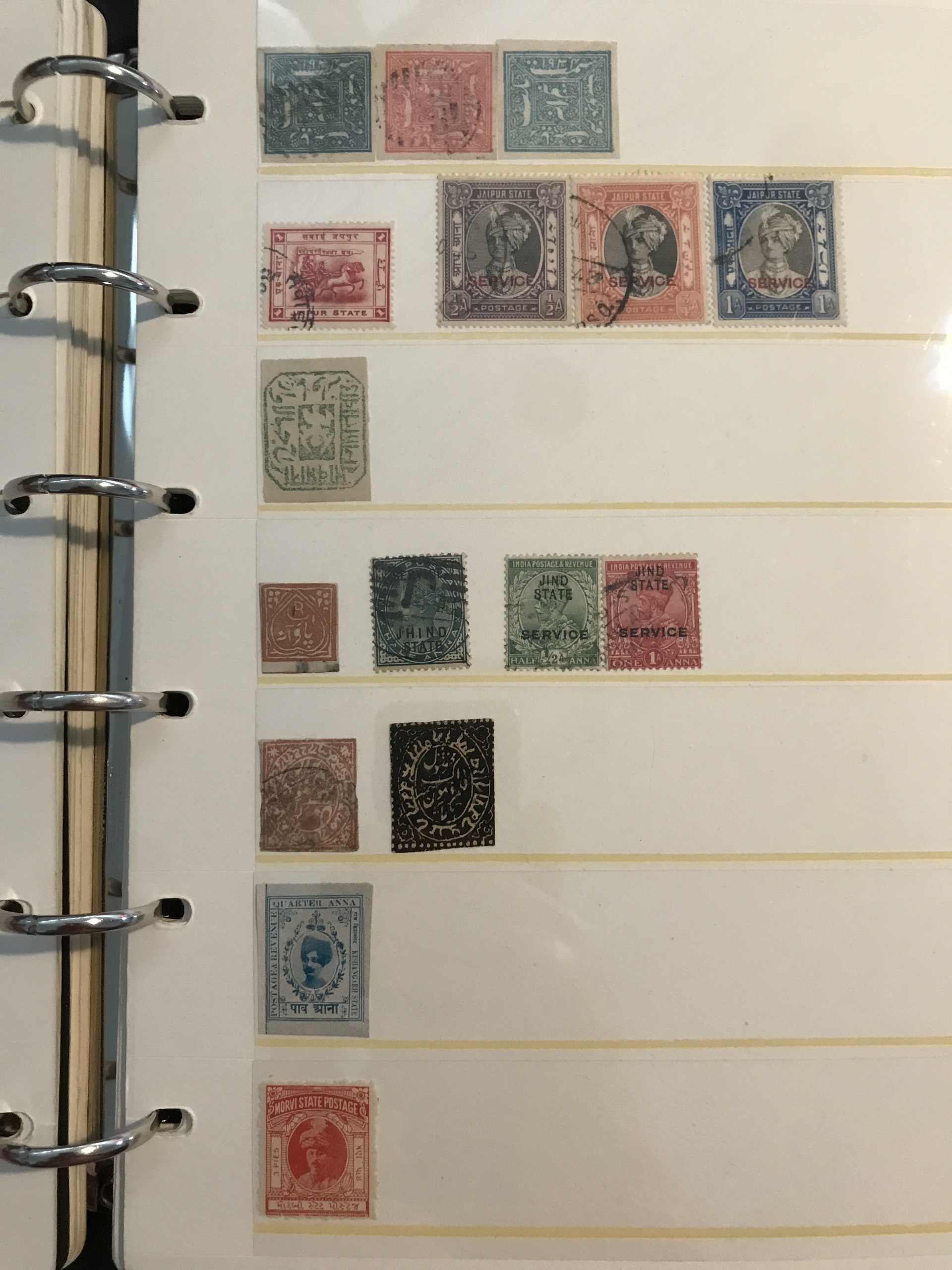 India. ★/⊙. Mostly used coll/accumulation classics–ca. 1950 in Visir binder incl. also Cochin, Charkari, Gwalior, Hyderabad, Patiala, Travancore official stamps, etc. (>500)