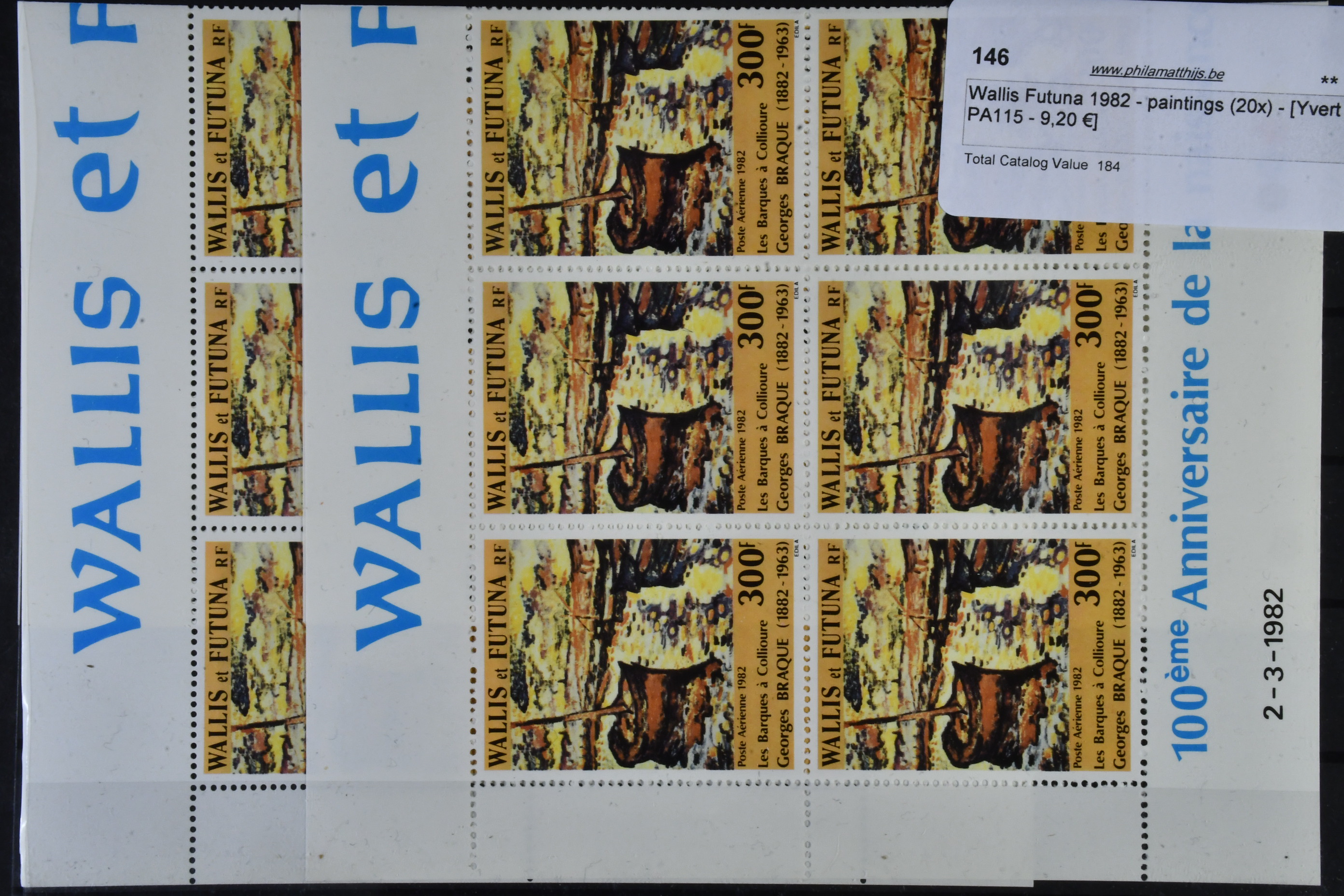 Wallis and Futuna. Accumulation ★★ 1970s–1980s. A ready to sell stock of this popular Pacific Island French colony. Everything here is in complete sets and has for example has the Painting issues of 1979, Flower air mails of 1981, Marine Life, Orchids and Shells 1982/3, further Seashell sets of 1985, etc, the Football/Soccer issue of 1986, Butterflies 1987, etc. We estimate the catalogue value to be well over €8500++. Many of the better sets are by the dozens, if not more. An opportunity for a dealer of this ever popular French Polynesian area.