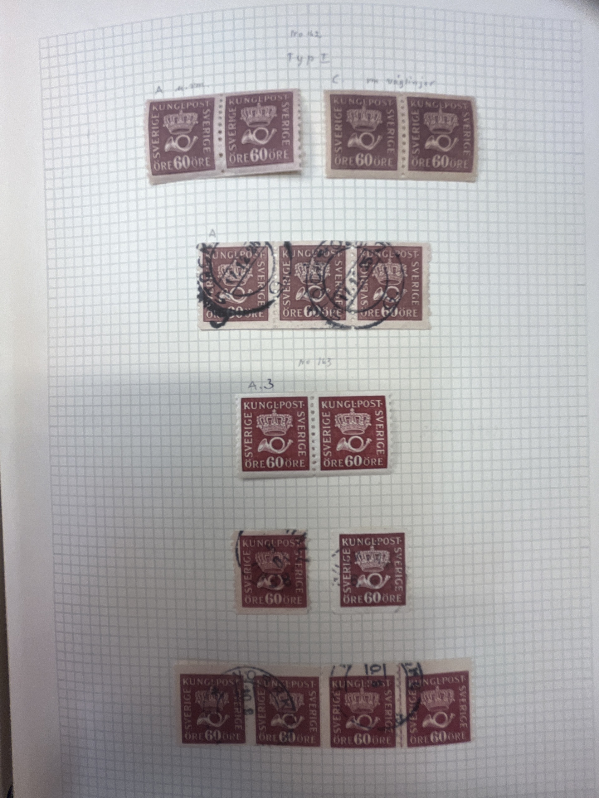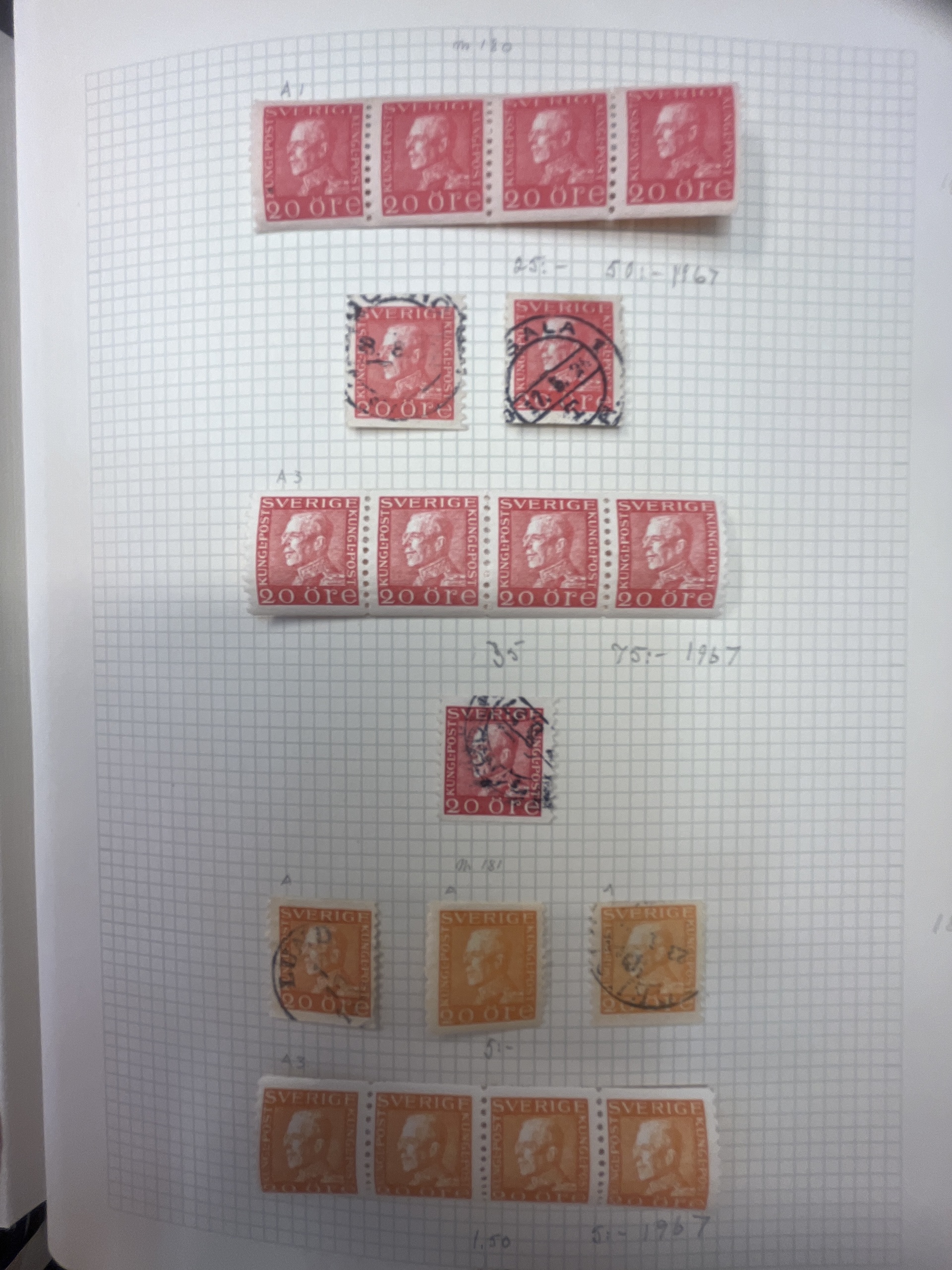 Sweden. Very fine old collection ★/⊙ 1920–1936 in album with many different watermarks, papers and some plate cracks, etc., plus several in strips and blocks. Please see a selection of scans at www.philea.se. Fine quality.