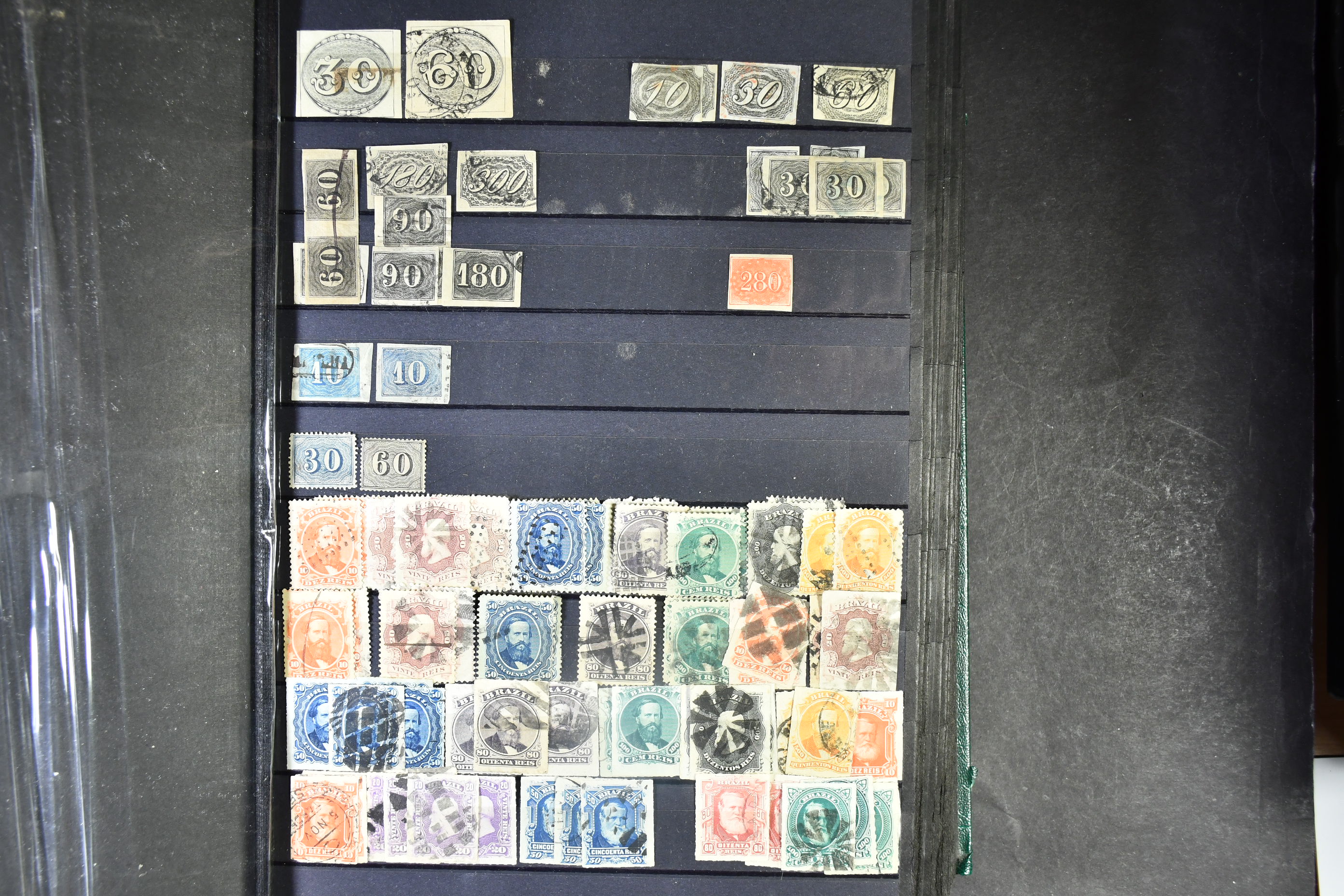 Brazil. Collection/accumulation ★★/★/⊙ 1843–1990 in stockbook. A quite comprehensive accumulation/collection starting with the first issues, however no guarantee for authenticity on the oldest issues. Many stamps in duplicate. A lot to explore. Please see a selection of scans at www.philea.se. Somewhat mixed quality. (>1000)