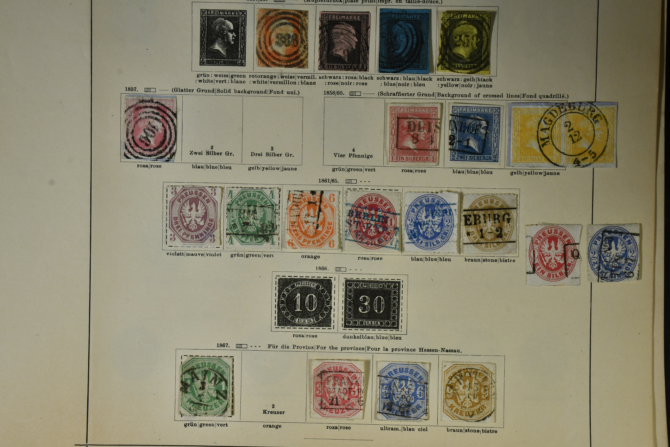 Germany, states. Collection mostly used on leaves. With many good stamps from various areas, e.g. Imperf Bavaria, nice Brauschweig inkl Mi 15 with cert., useful Baden, few Schleswig, Prussia, NDP, Saxony, etc, the important pages all on our website. Somewhat mixed quality.