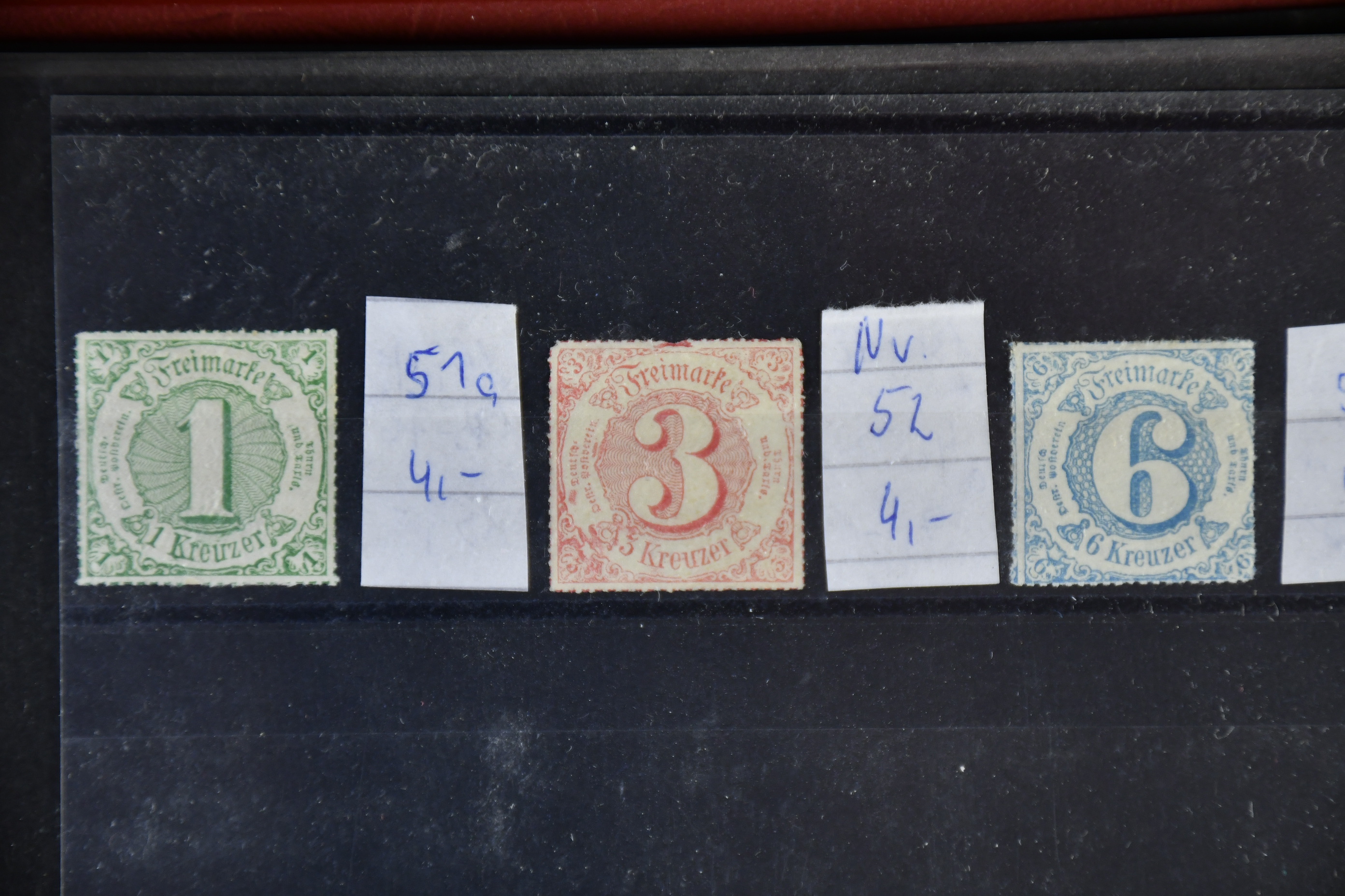 Germany, states. Accumulation used on stock cards and small stockbook pages. Good selection of around 500 stamps incl many better, most states represented, many with catalogue numbers and - prices for ease of valuation. The entire lot is presented at www.philea.se.