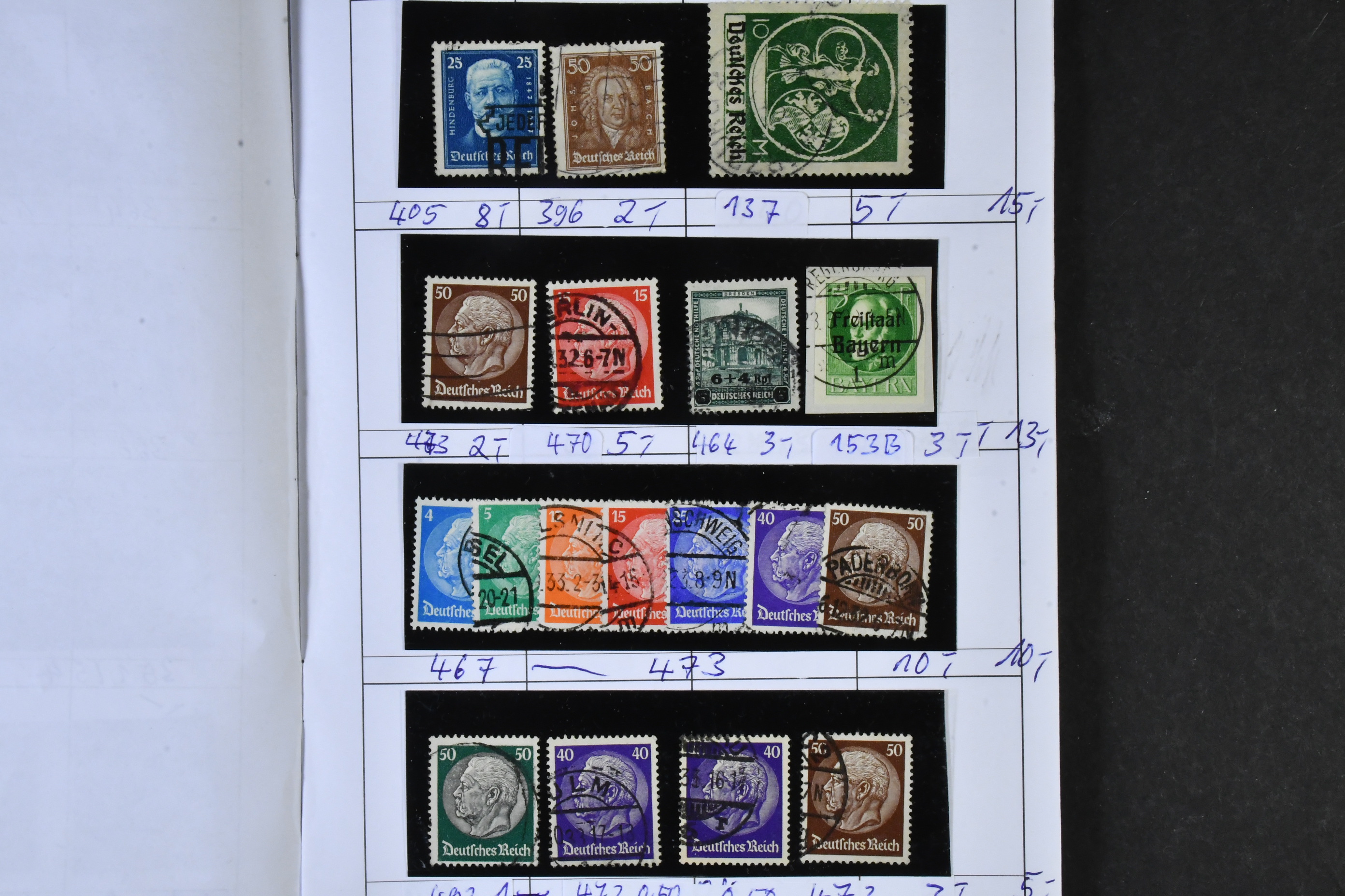 Germany, Reich. Accumulation mostly used Eagles–1940s in three approval booklets. Medium-priced and bettter stamps and sets in good variation, good for resale, sale value almost EUR 1500 and apparently reasonably retail levels. Several good pages at www.philea.se. Mostly fine quality.