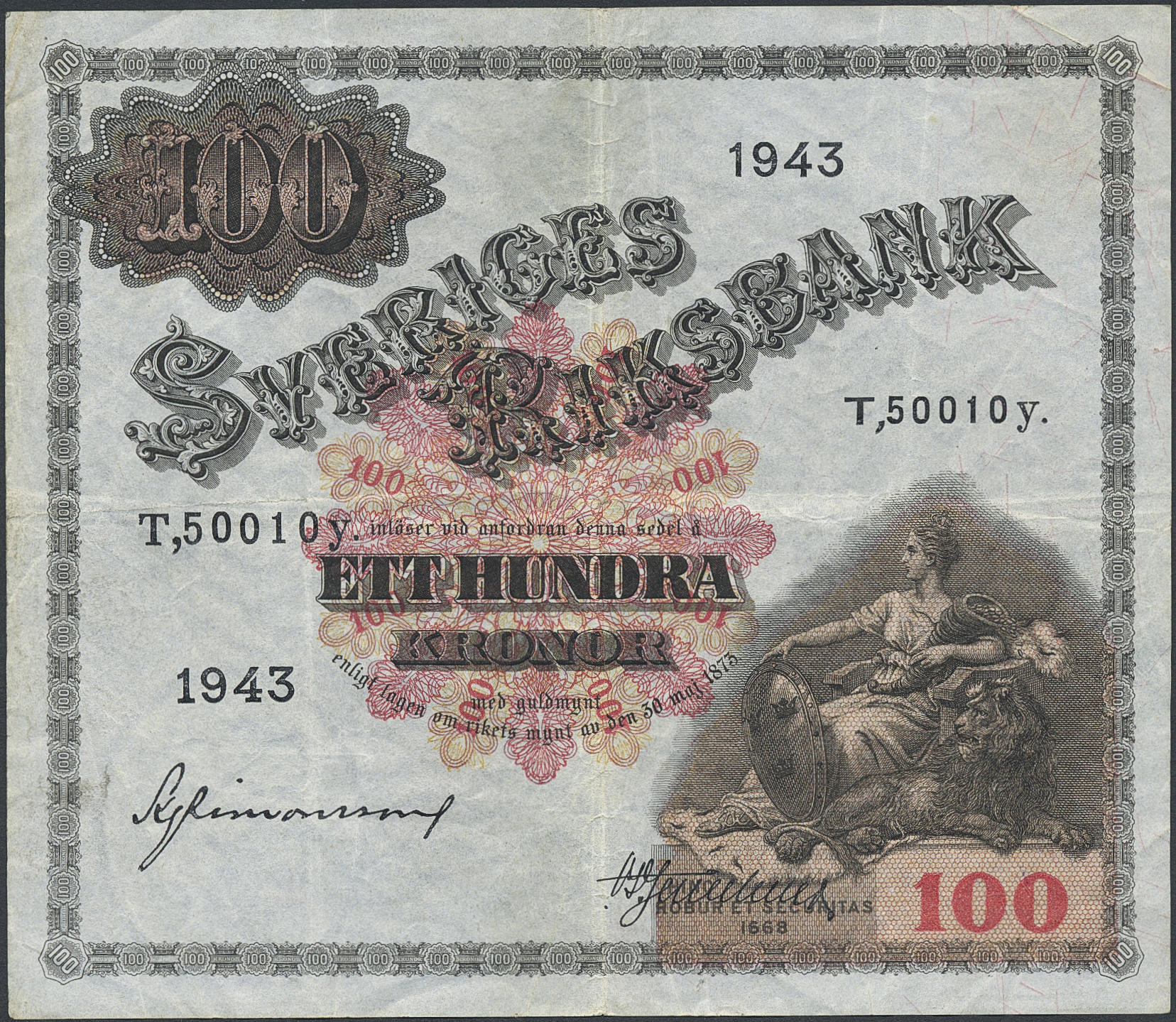 Banknotes, Sweden. SF U8:28, 100 kronor 1943. 1.