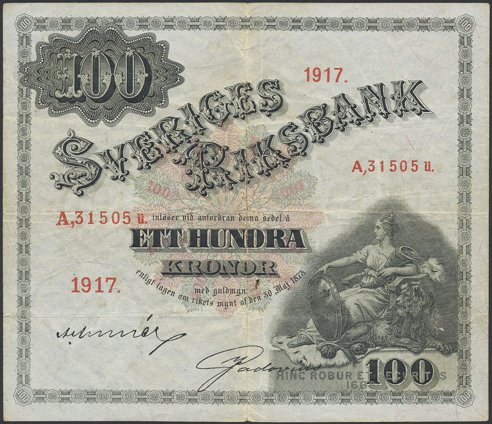 Banknotes, Sweden. SF U7:11, 100 kronor 1917. A31505u. 1.