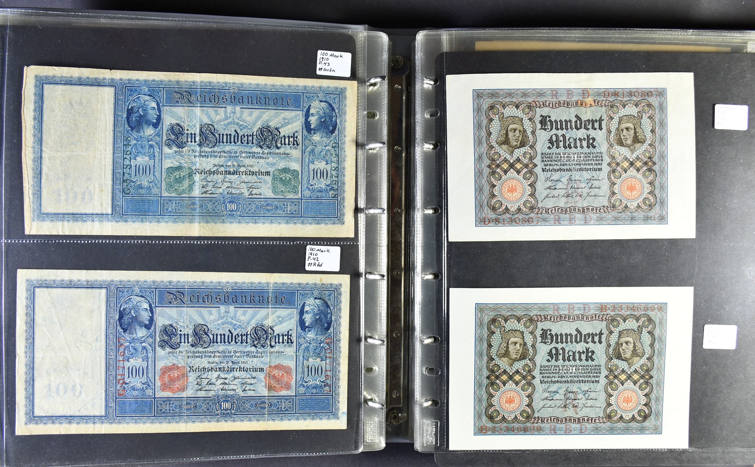 Banknotes, Germany, Mixed. Collection of German banknotes approx. 1900–1950 in album. All apparently different and sorted by Pick number. Many notes are uncirculated. Please inspect! F-UNC.