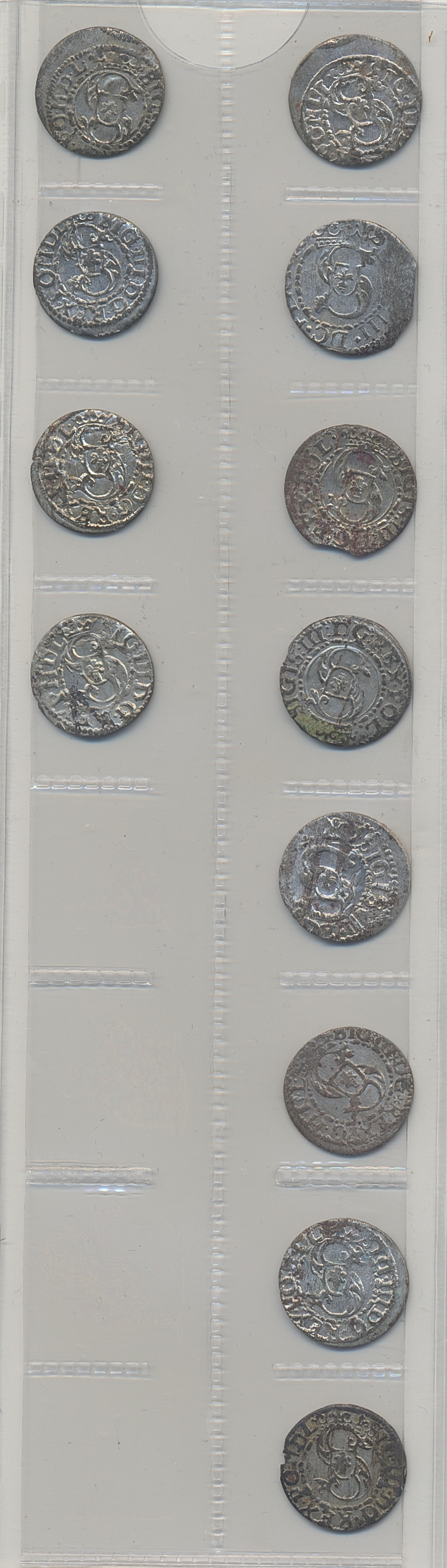 Coins, Poland. Sigismund III Vasa, Riga solidus coinage, 12 pieces in high grade. Some showing planchet flaws and verdigris, but overall high grade – please inspect! XF-UNC.