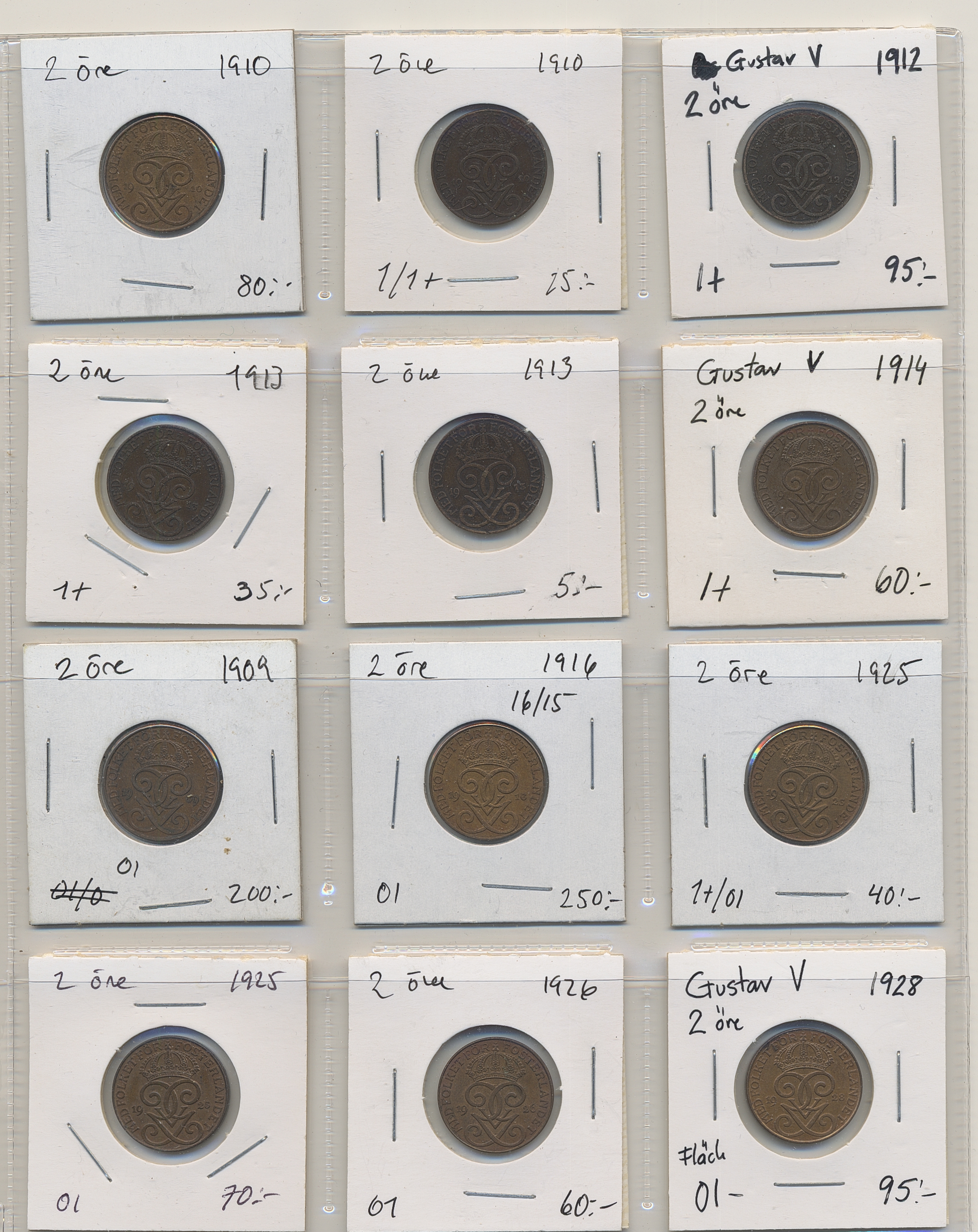 Coins, Sweden. Collection of Gustav V 1–5 öre 1909–1950, in total 77 pcs, many in high grades. Please inspect! .