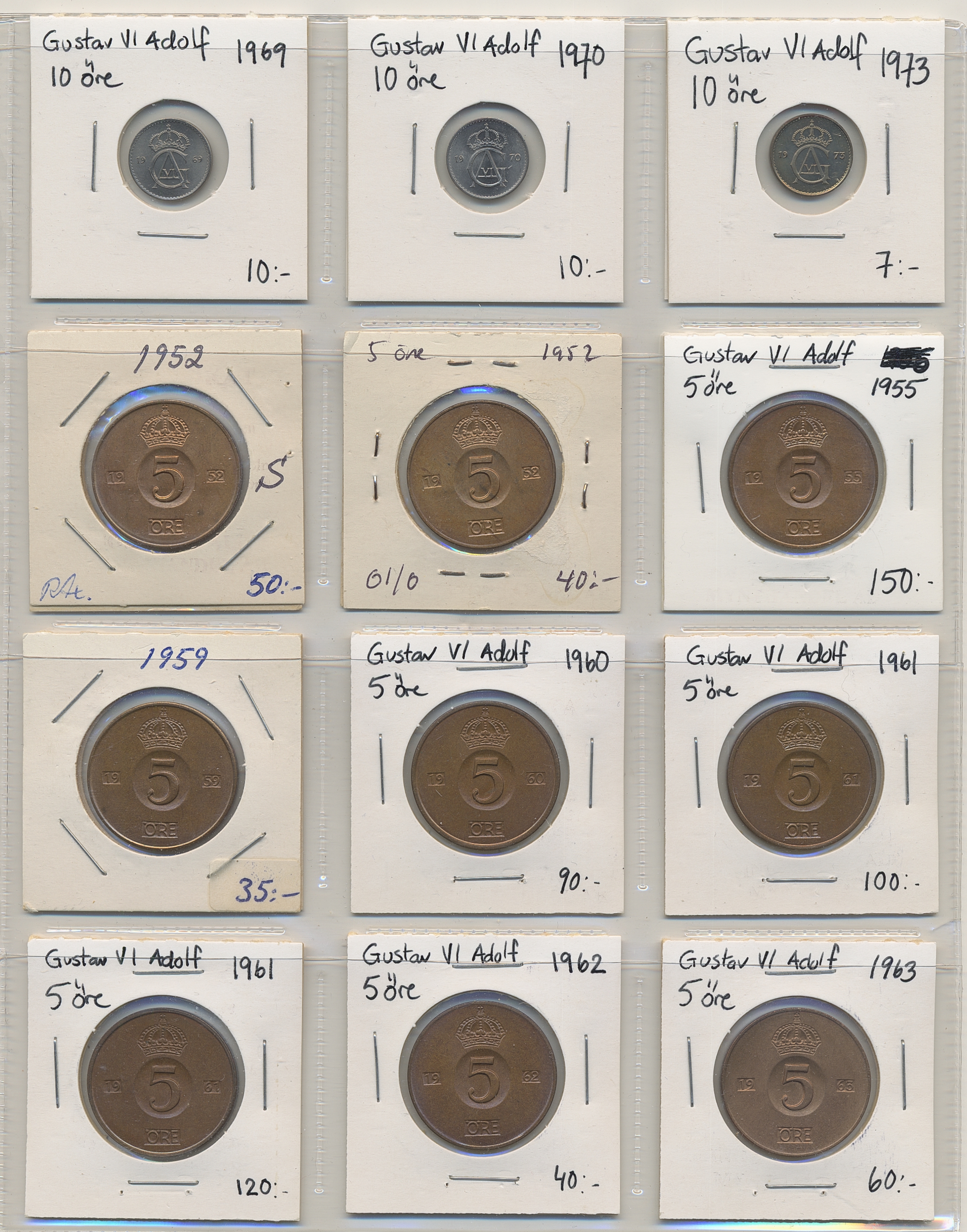 Coins, Sweden. Gustav VI Adolf, 132 pcs and many in high grades. Please inspect! .
