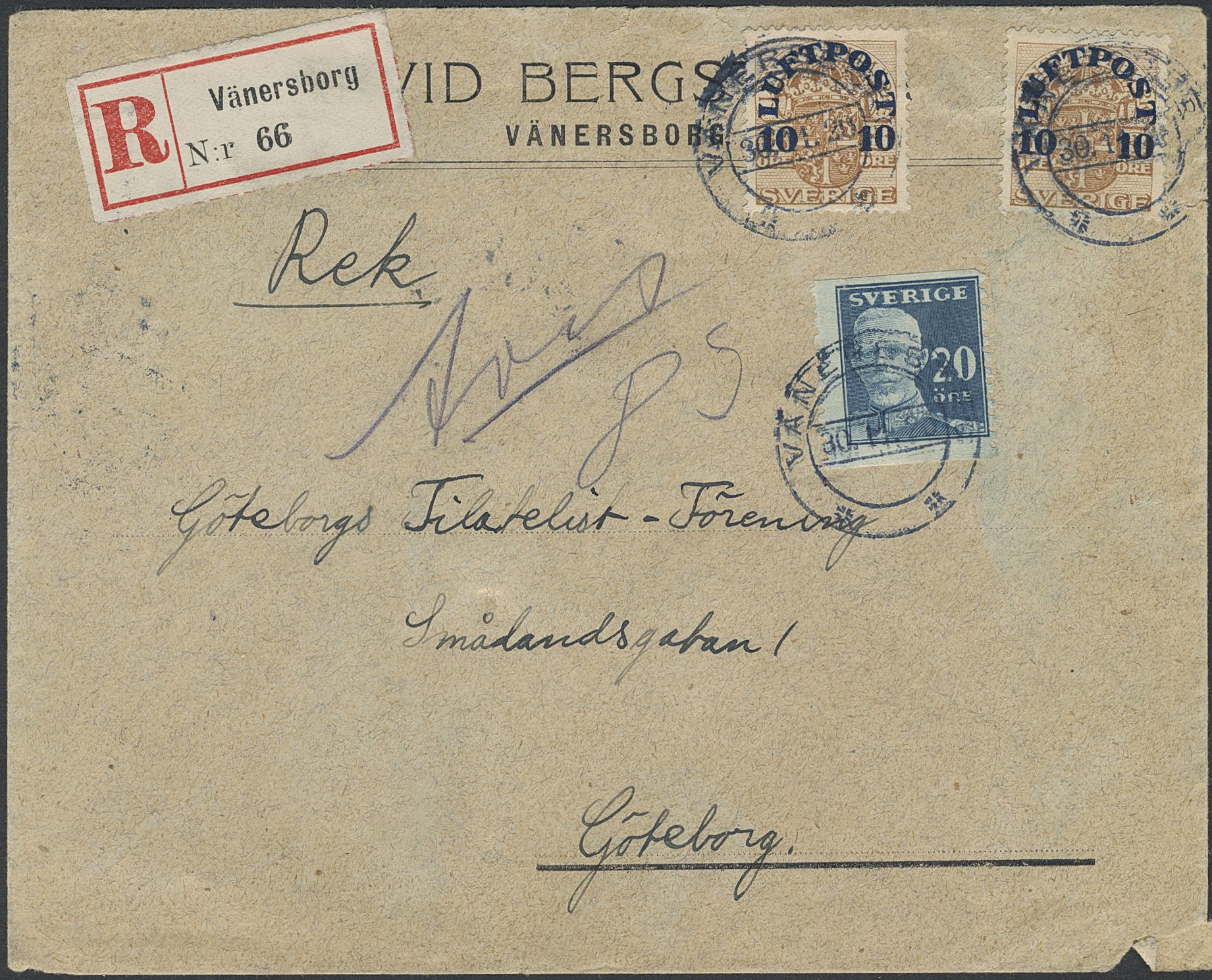 Sweden. Collection covers REGISTERED MAIL 1898–1937 on visir leaves. Interesting mix of mixed frankings and other nice combinations, incl. usages with cash on delivery, special delivery and censor. The entire lot is presented at www.philea.se. Somewhat mixed quality. (14)