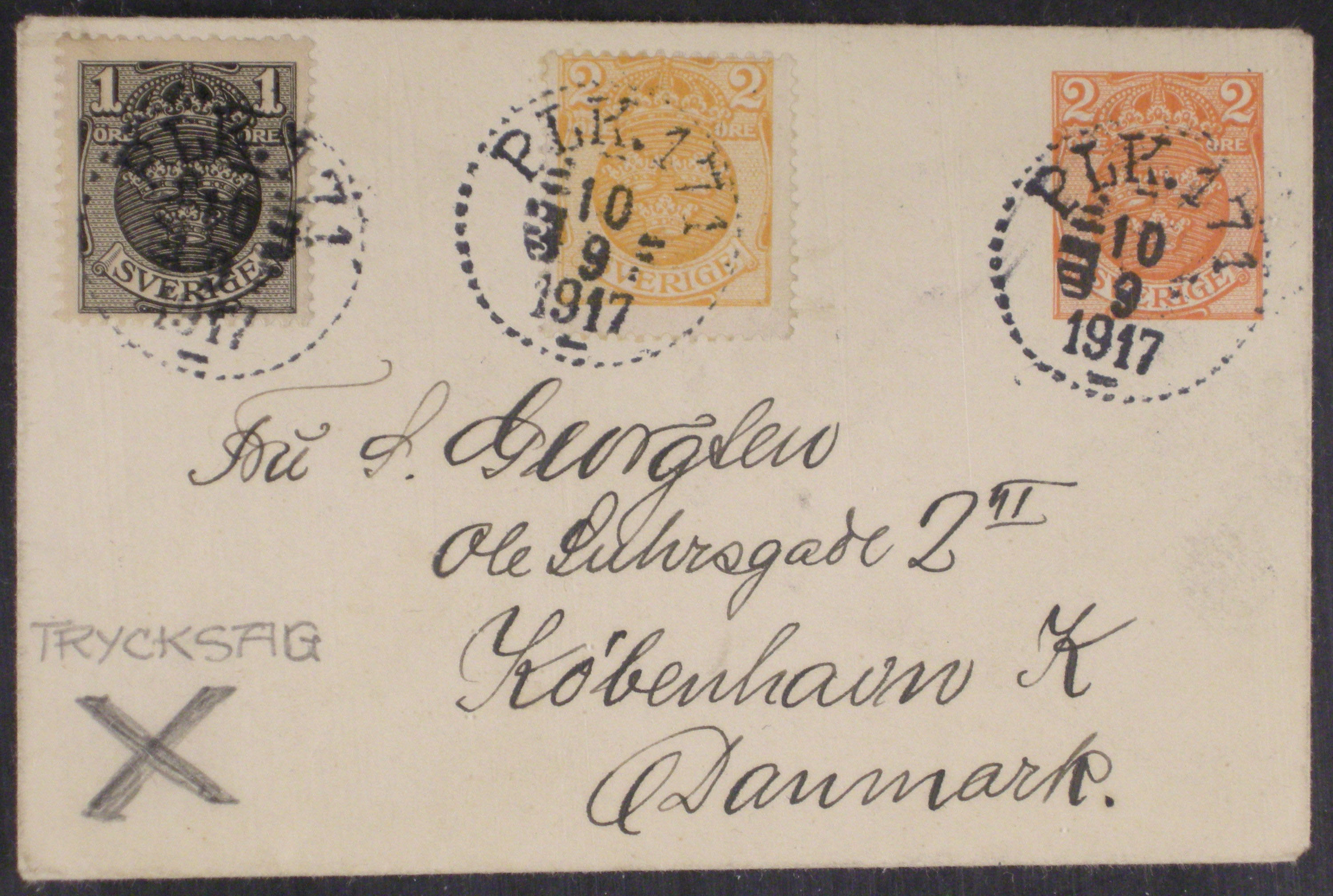 Sweden. Postal stationery, collection STAMPED ENVELOPES Fk7–13 on visir leaves. Nice mix of selected usages to abroad, additional frankings, postage due, etc. The entire lot is presented at www.philea.se. Mostly good quality. (11)
