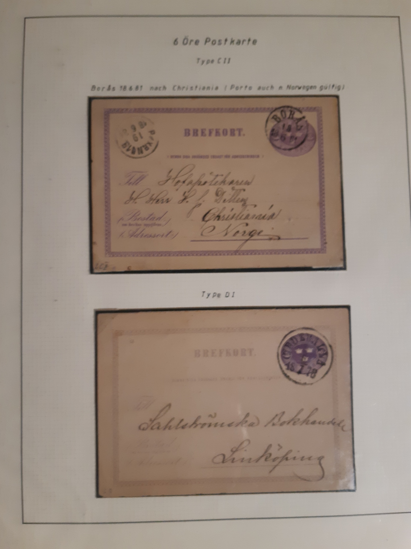 Sweden. Postal stationery, collection SINGLE POSTCARDS beautifully mounted in three Linder albums. Unused and used examples in mostly very fine quality. E.g. different types, shades, usages to abroad, additional frankings, some varities, etc. Also Official postcards. (150)