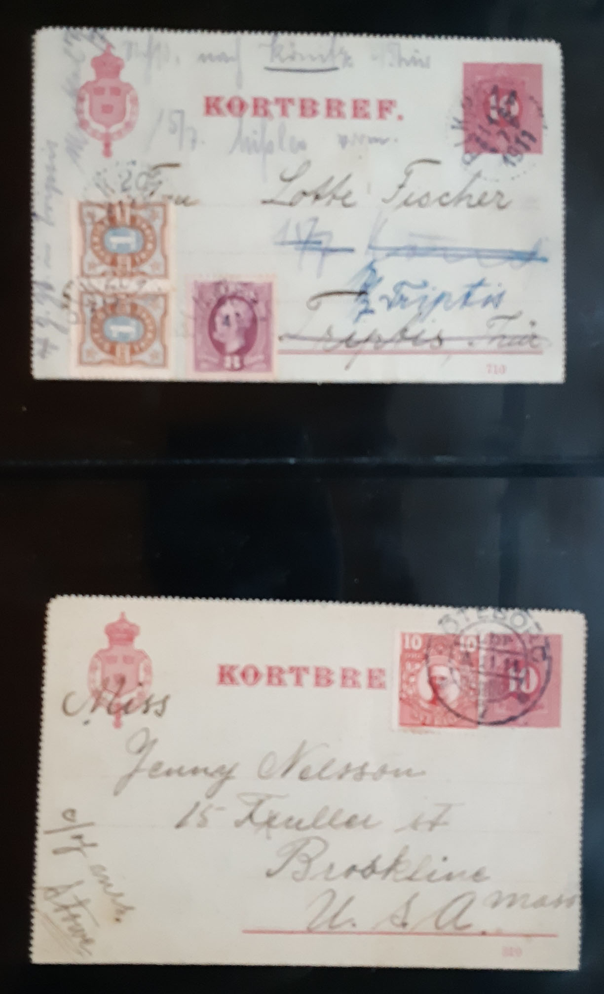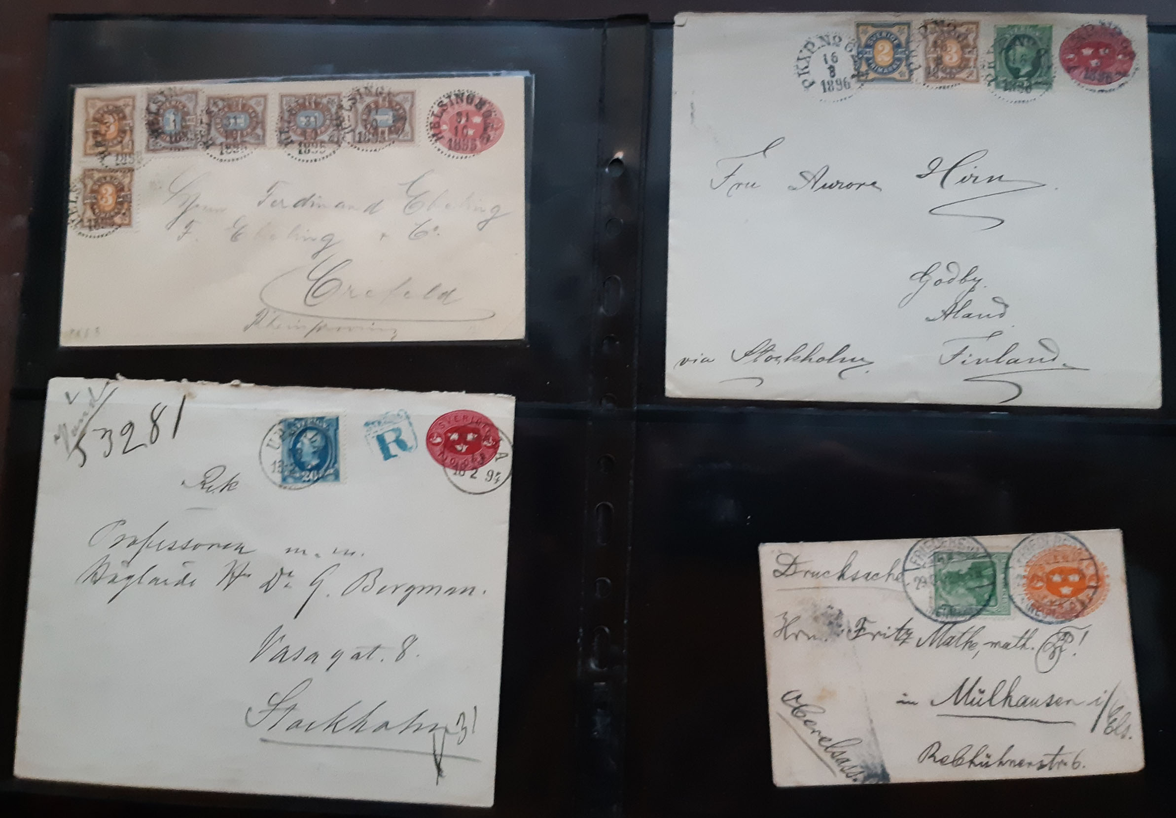 Sweden. Postal stationery, collection 1880s–1938 in visir album. Better usages, many with additional frankings, foreign destinations, registered, special delivery, postage due, etc. The entire lot is presented at www.philea.se. Mostly good quality. (23)