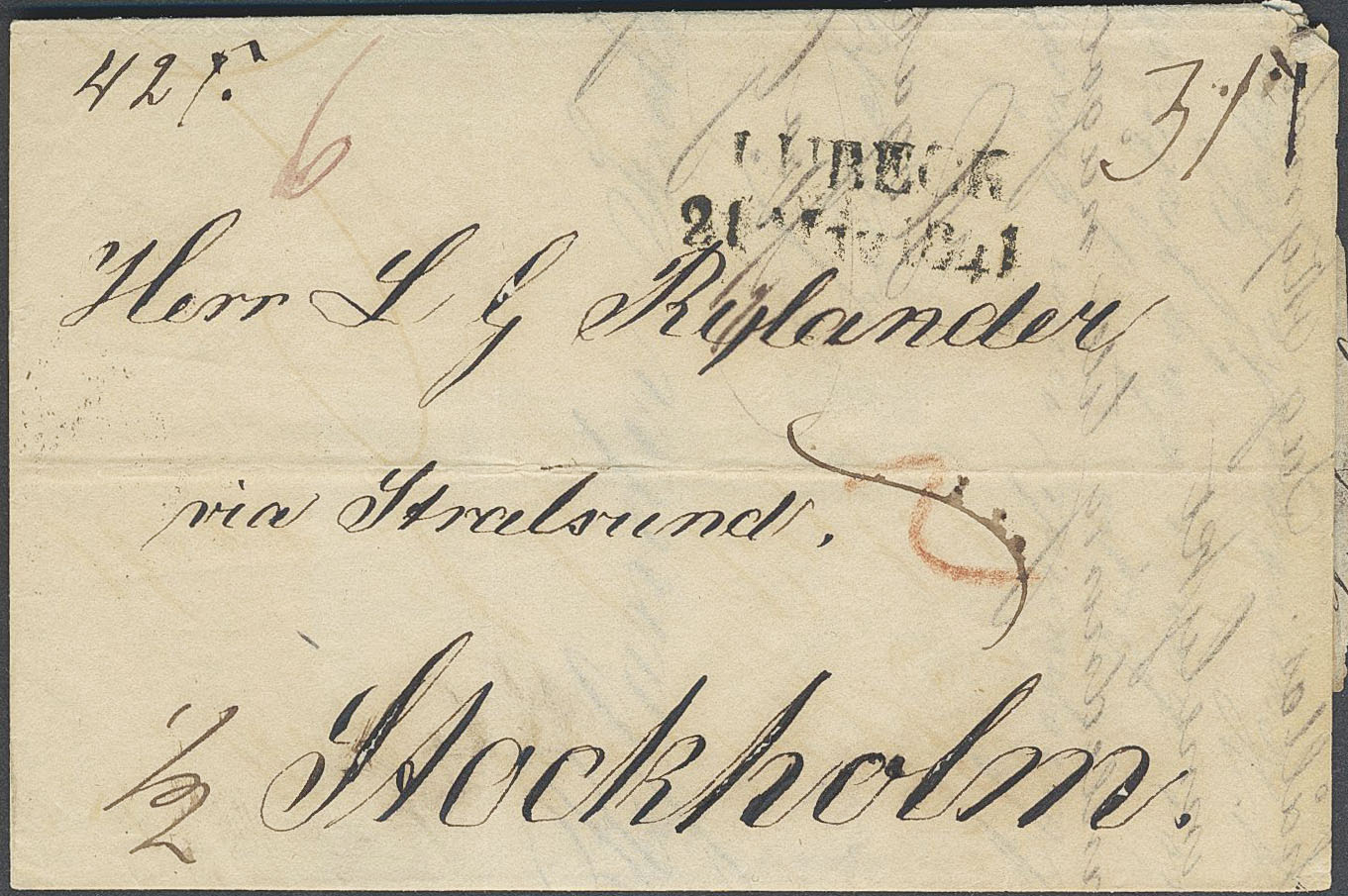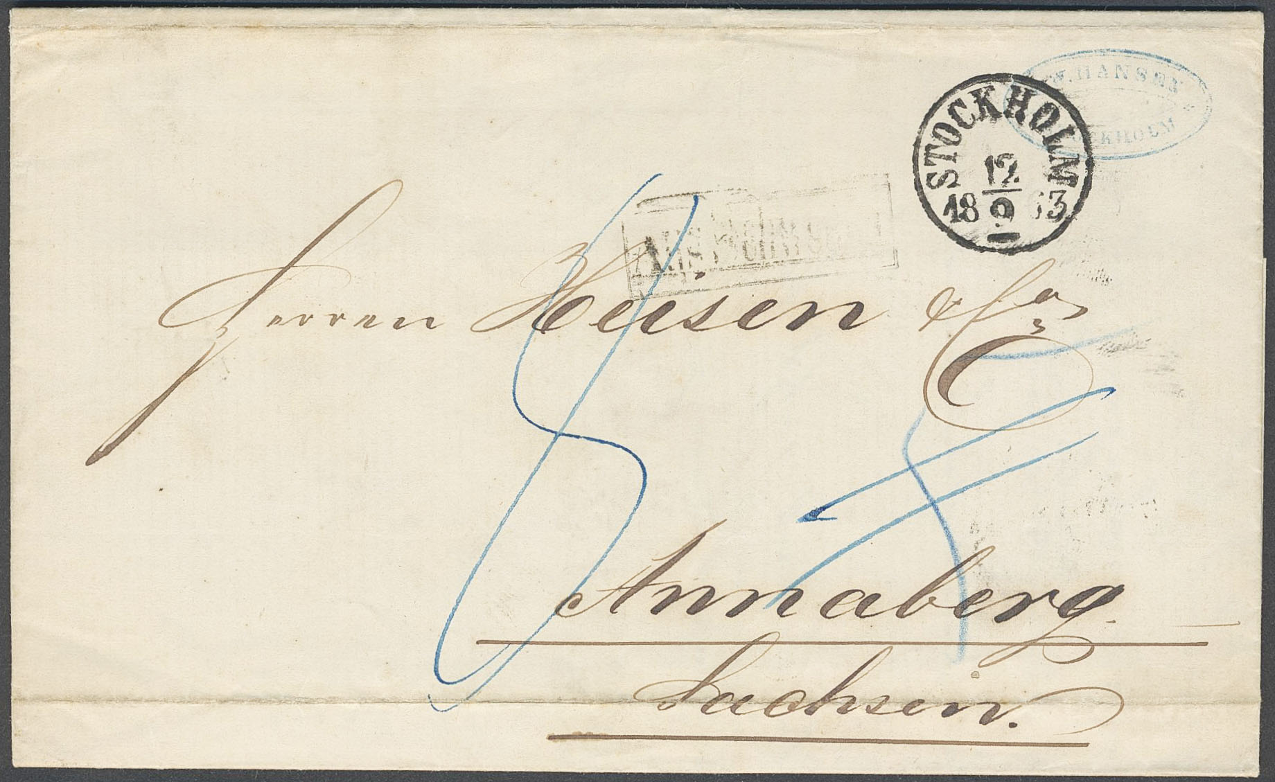 Sweden. Prephilately, collection FOREIGN-RELATED 1836–1868 on leaves. Incoming/outgoing covers from/to Denmark, Finland, German states and Norway, incl. one with postage due mark 36 öre. The entire lot is presented at www.philea.se. Mostly good quality. (13)