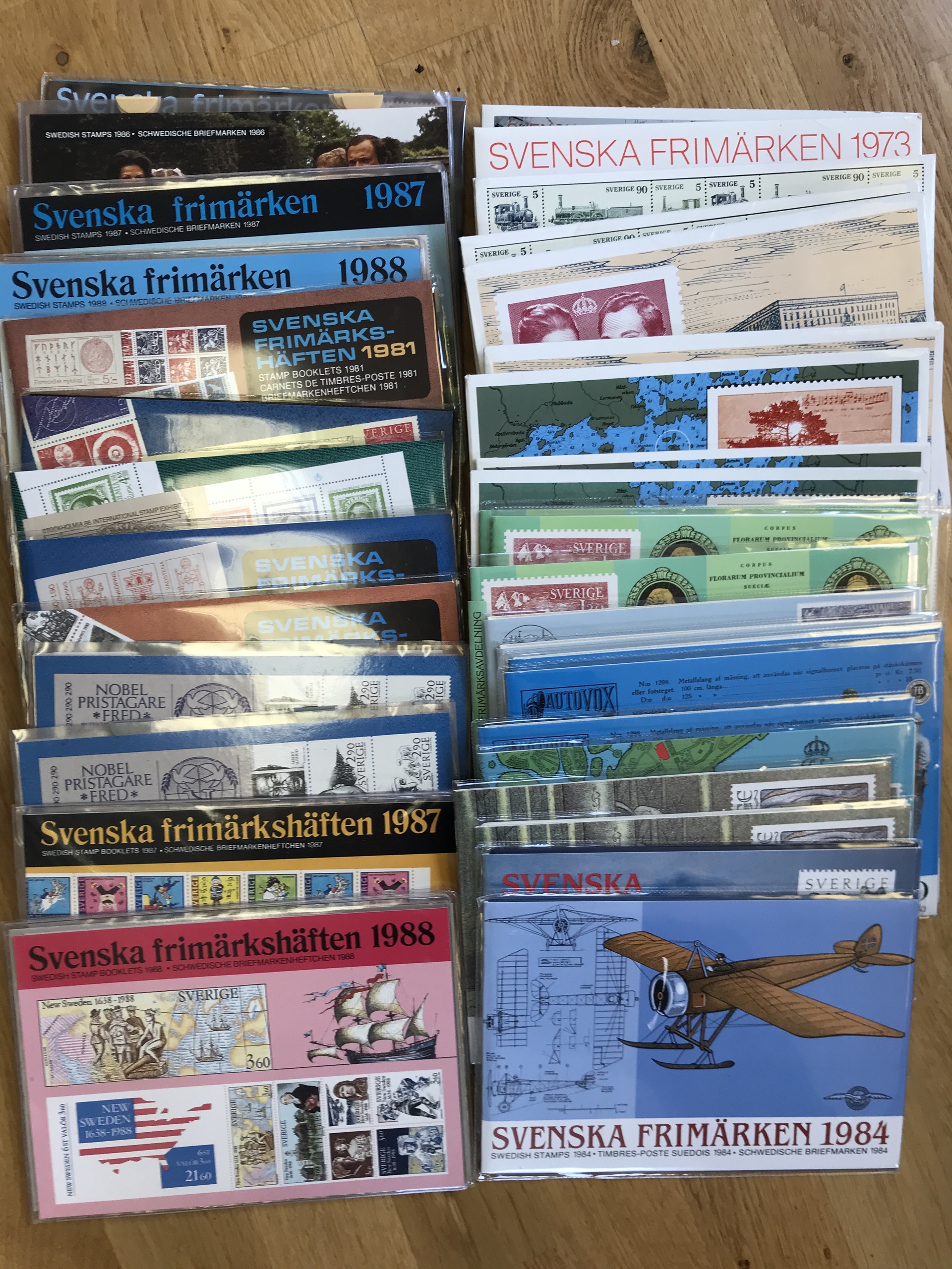 Sweden. Year sets. 28 year sets 1971–1988 (some opened) + nine booklet year sets 1981–1988. Face value approx. 3460.