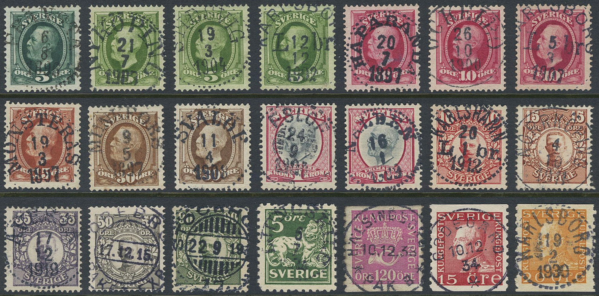 Sweden. Lot used OSCAR II–COIL STAMPS. Selected stamps with Superb–EXCELLENT cancellations. The entire lot is presented at www.philea.se. (21)