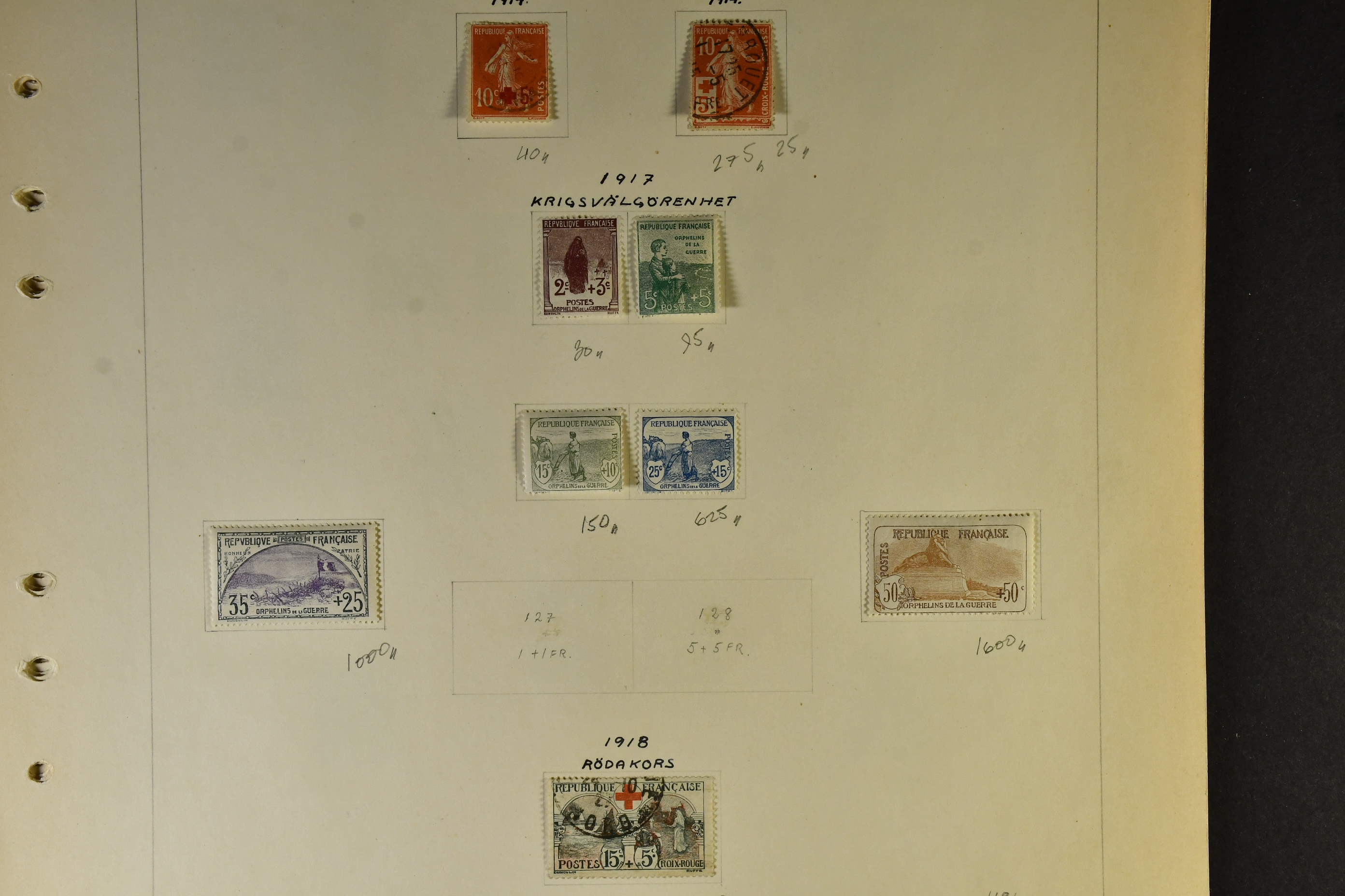 France. Collection ★/⊙ 1849–1939 on leaves. E.g. good range of classics and better air mail. Most important pages avaliable on the website. Mostly fine quality.
