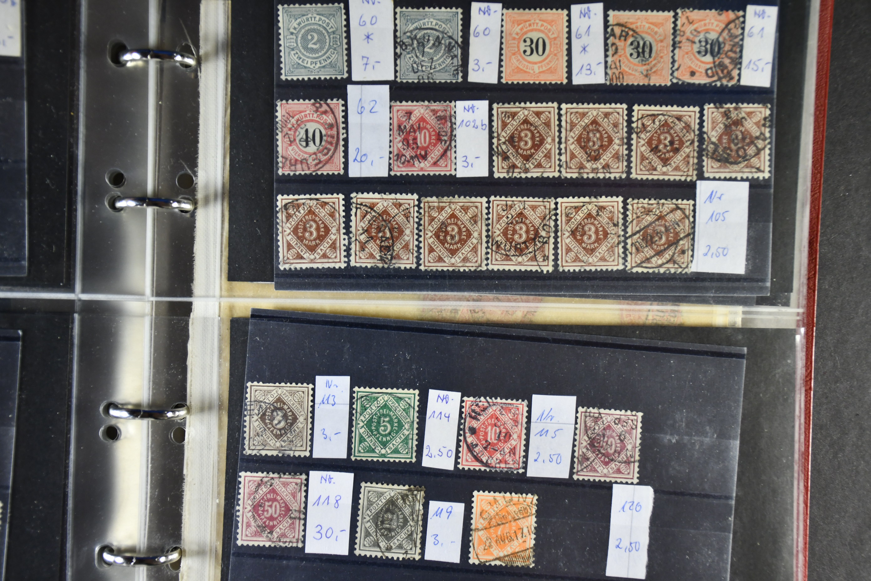 Germany, states. Accumulation used on stock cards and small stockbook pages. Good selection of around 500 stamps incl many better, most states represented, many with catalogue numbers and - prices for ease of valuation. The entire lot is presented at www.philea.se.