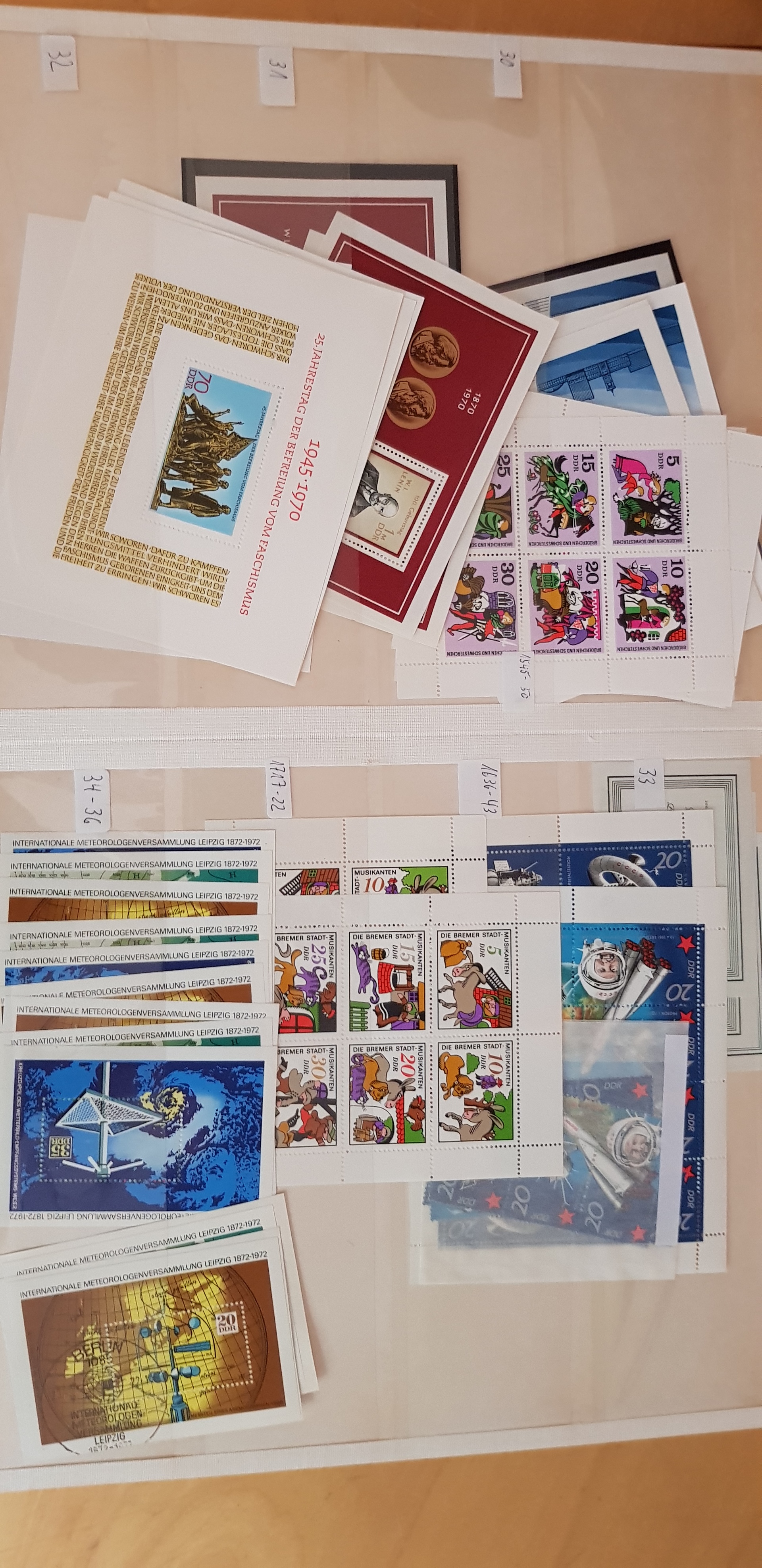 Germany, GDR (DDR). Accumulation mostly used 1900s in box. A huge amount of duplicates incl. some souvenier sheets. Please see a selection of scans at www.philea.se. Mostly good quality. Approx. 7 kg. (>10.000)